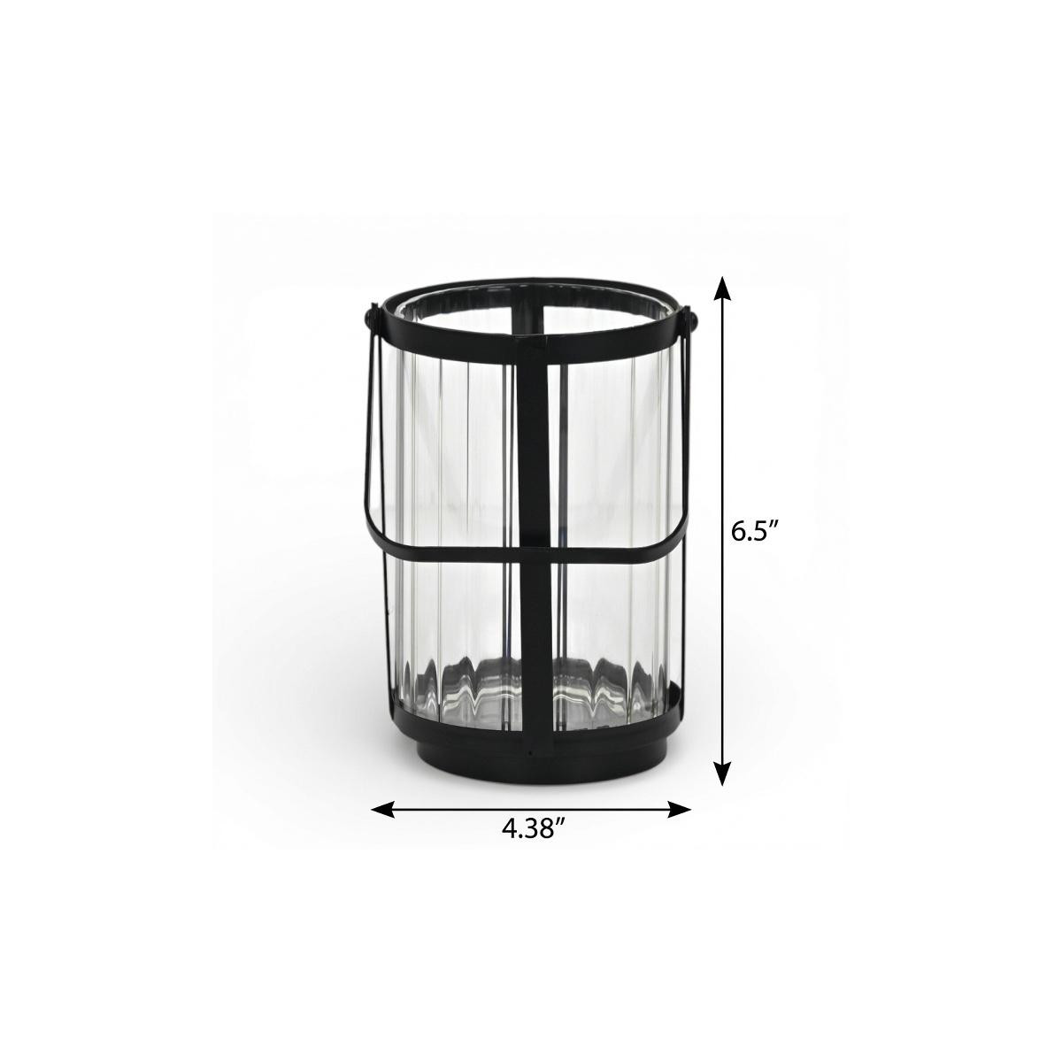 You can showcase this 7-inch black glass tabletop lantern candle holder on its own as alternative centerpieces or position it among flower arrangements on your tables. A perfect functional and decorative accent piece for weddings, dining tables and living rooms alike. Handmade by skilled craftsmen and designed to add a glamorous glow to any event or table setting. Add an extra pop of personality to every corner of your home with this gorgeous candleholder candleholders are an attractive way to turn a simple candle into a piece of décor. 6.50-inch h x 4.38-inch w x 4.38-inch d.