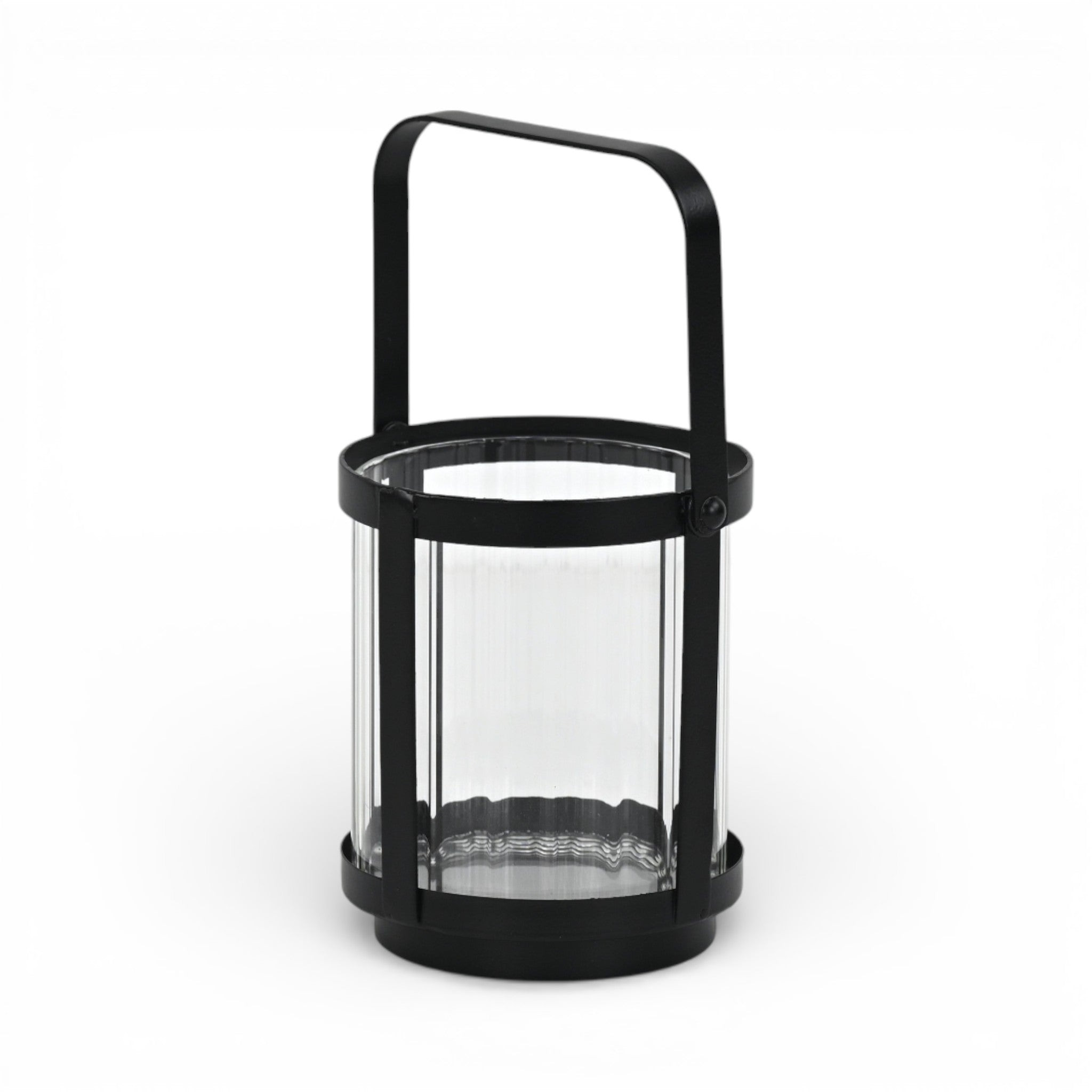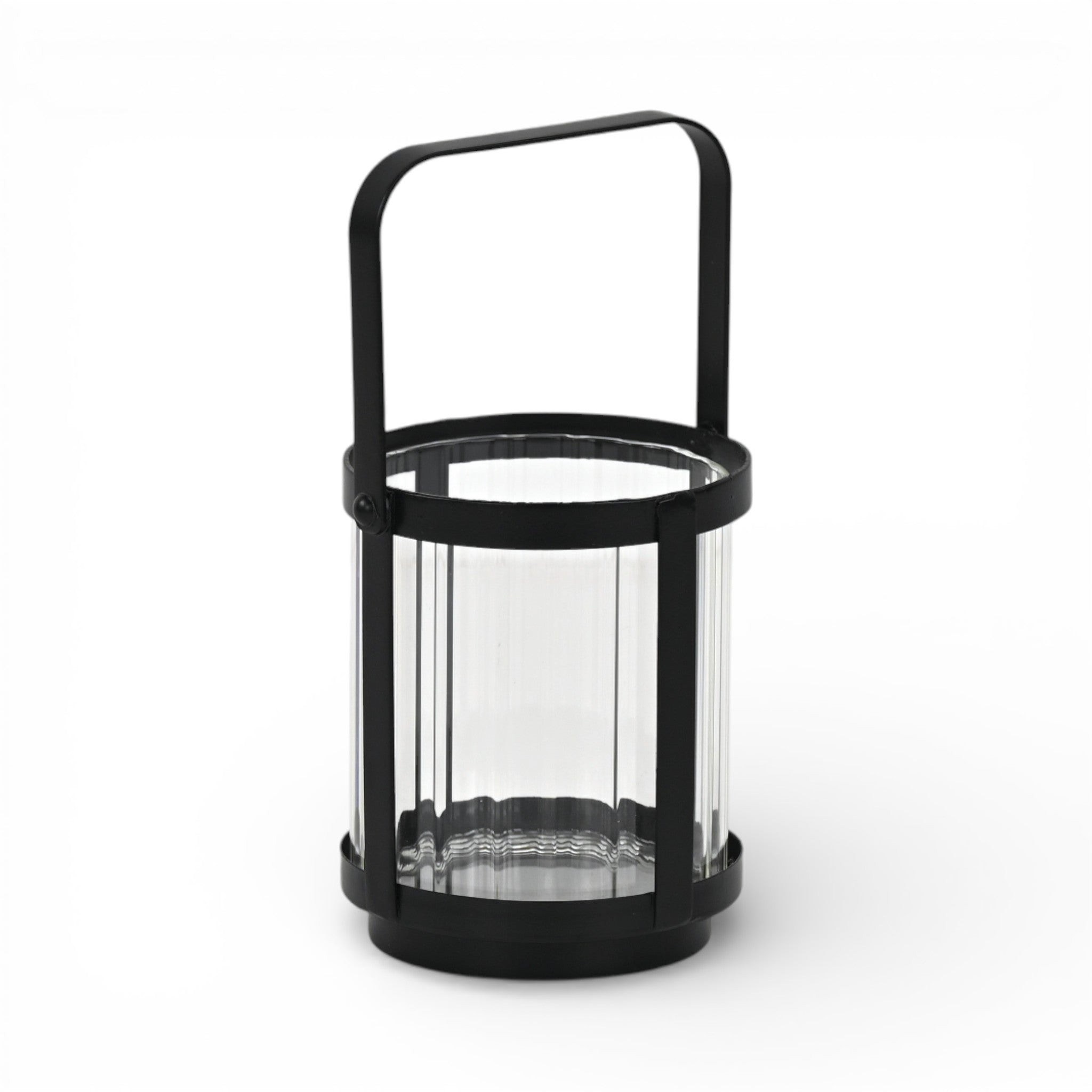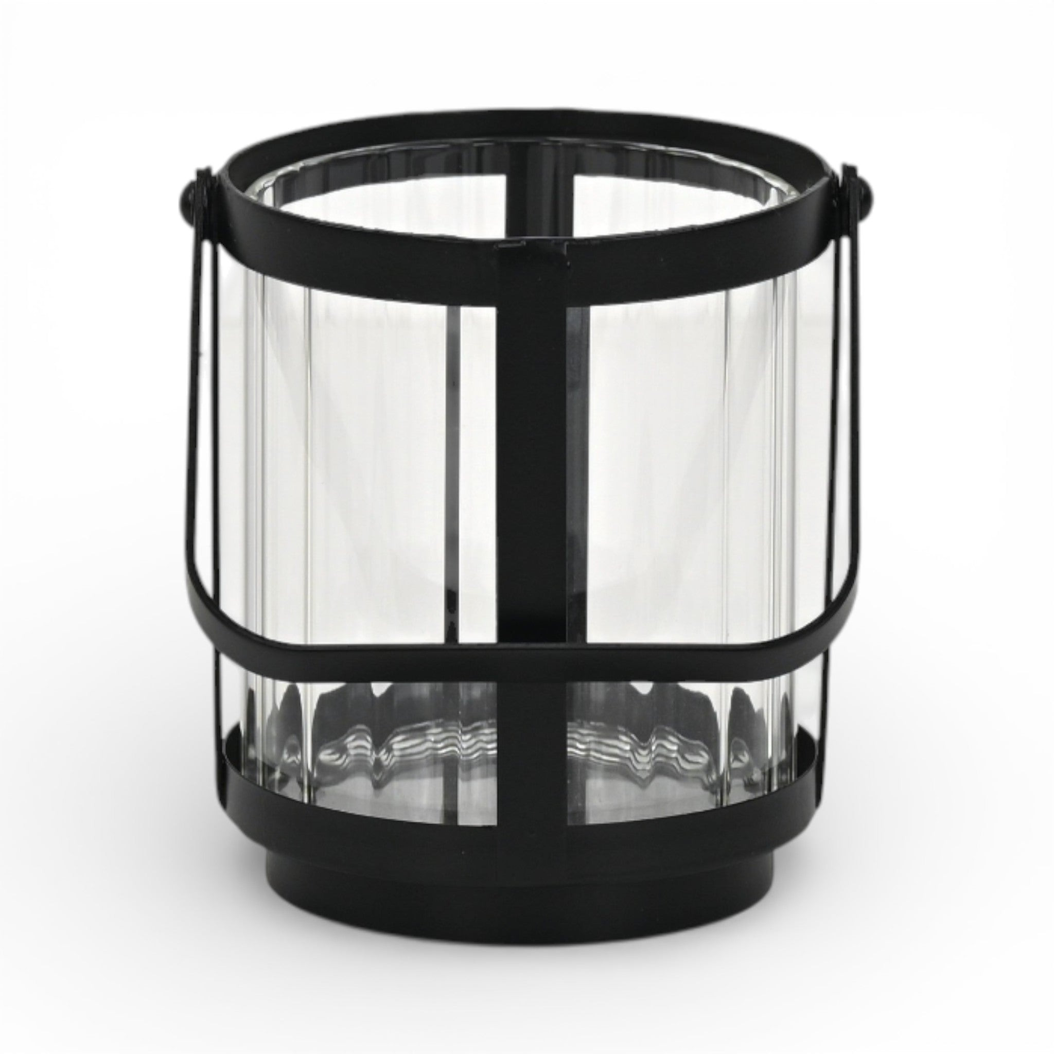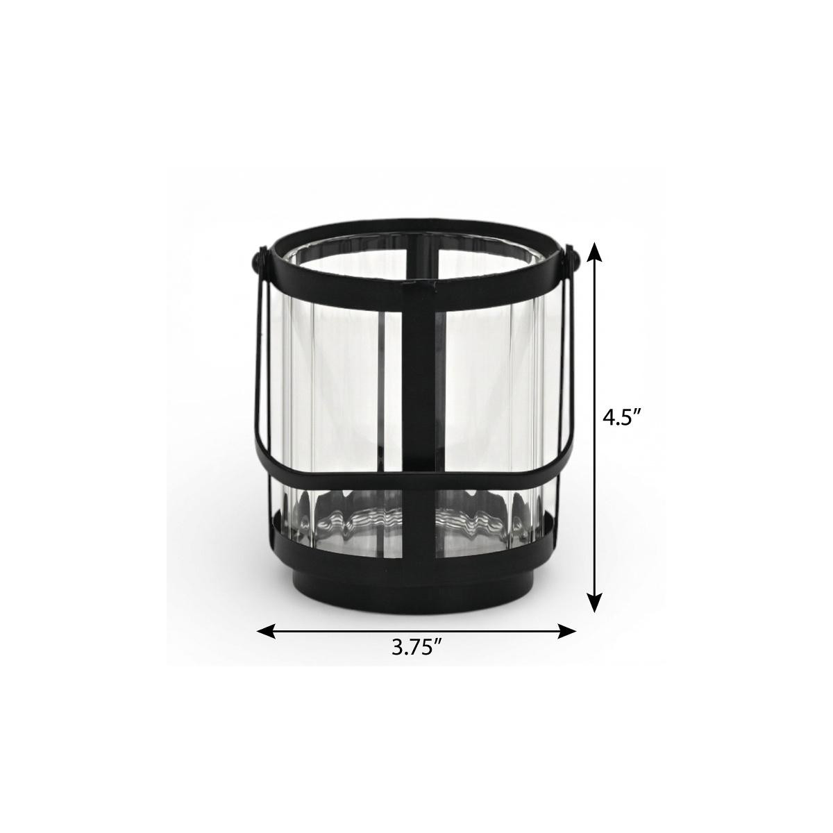 Stylize your tabletop, light up your back patio or add the perfect touch of low light to your living room with this 5-inch clear and black glass and metal tabletop lantern candle holder. Handmade by skilled craftsmen and designed to add a glamorous glow to any event or table setting. Add an extra pop of personality to every corner of your home with this gorgeous candleholder candleholders are an attractive way to turn a simple candle into a piece of décor. 4.50-inch h x 3.75-inch w x 3.75-inch d.