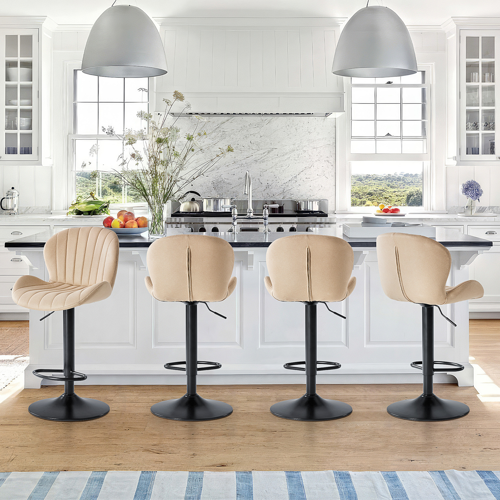 adjustable height swivel bar chairs, set beige black faux leather, swivel bar chairs, height swivel bar chairs, black faux leather aluminum adjustable |