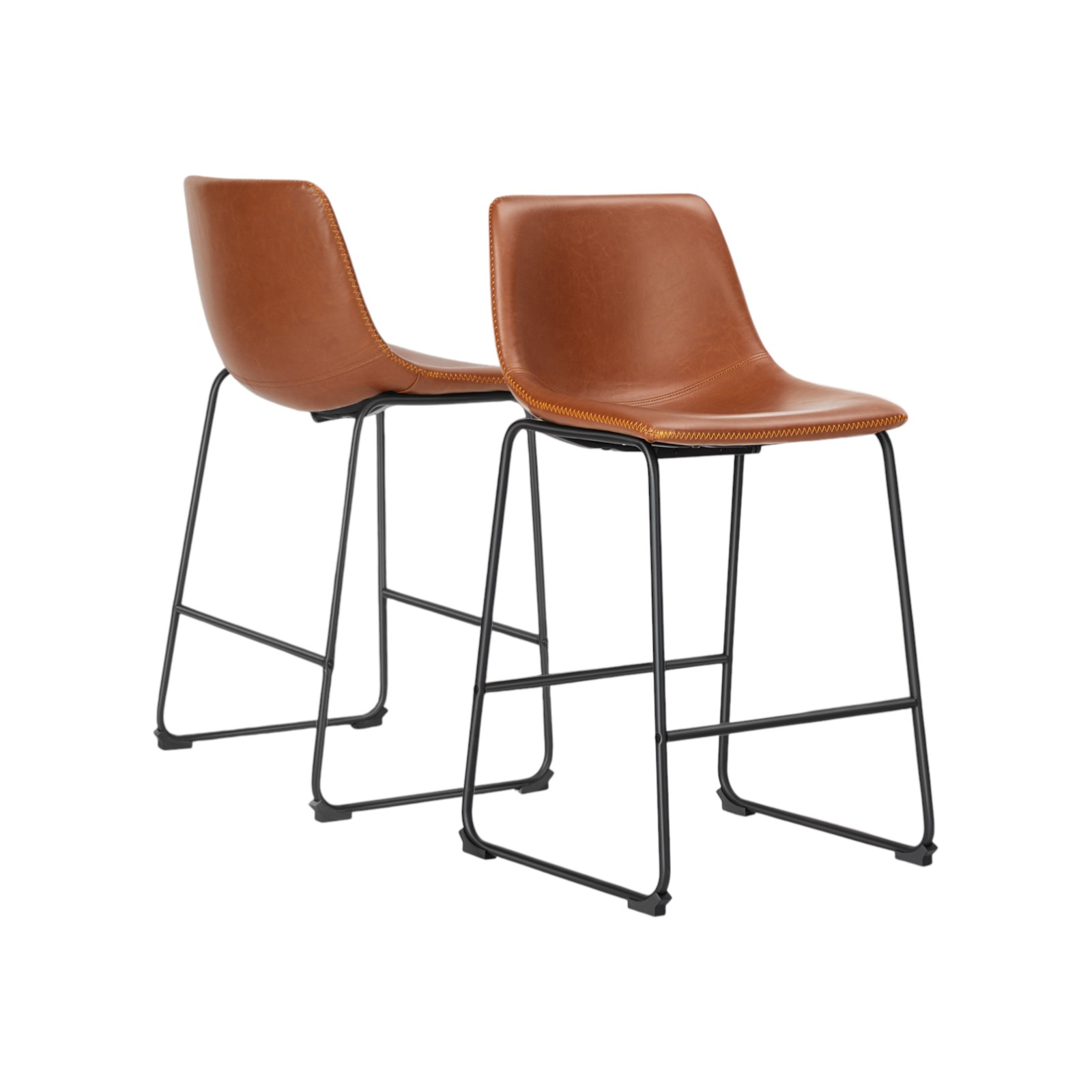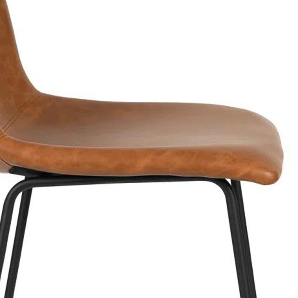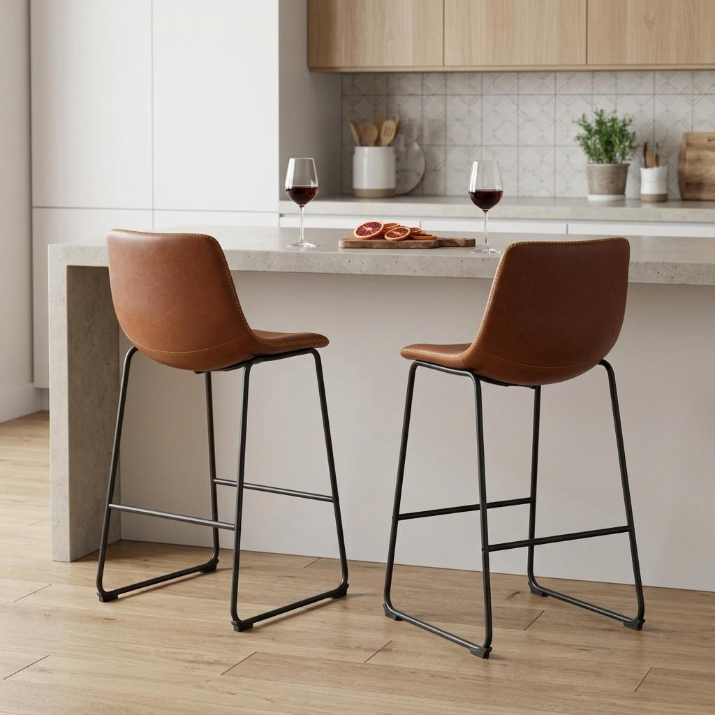 The perfect way to add some extra seating in your home, this set of two 26-inch brown and black faux leather and aluminum counter height bar chairs will elevate the look and vibe of your room. The black coloration of the high quality aluminum base marries nicely with the brown upholstered seat. The bucket seat design provides comfort and style while the full back support enhances relaxation. With a modern aesthetic, these chairs are ideal for any contemporary setting. Each chair stands at a height of 25.9 inches, making them perfect for counter use and versatile in various spaces. Enjoy the perfect blend of function and fashion with this chic set. 36.20-inch h x 20.80-inch w x 18.50-inch d.
