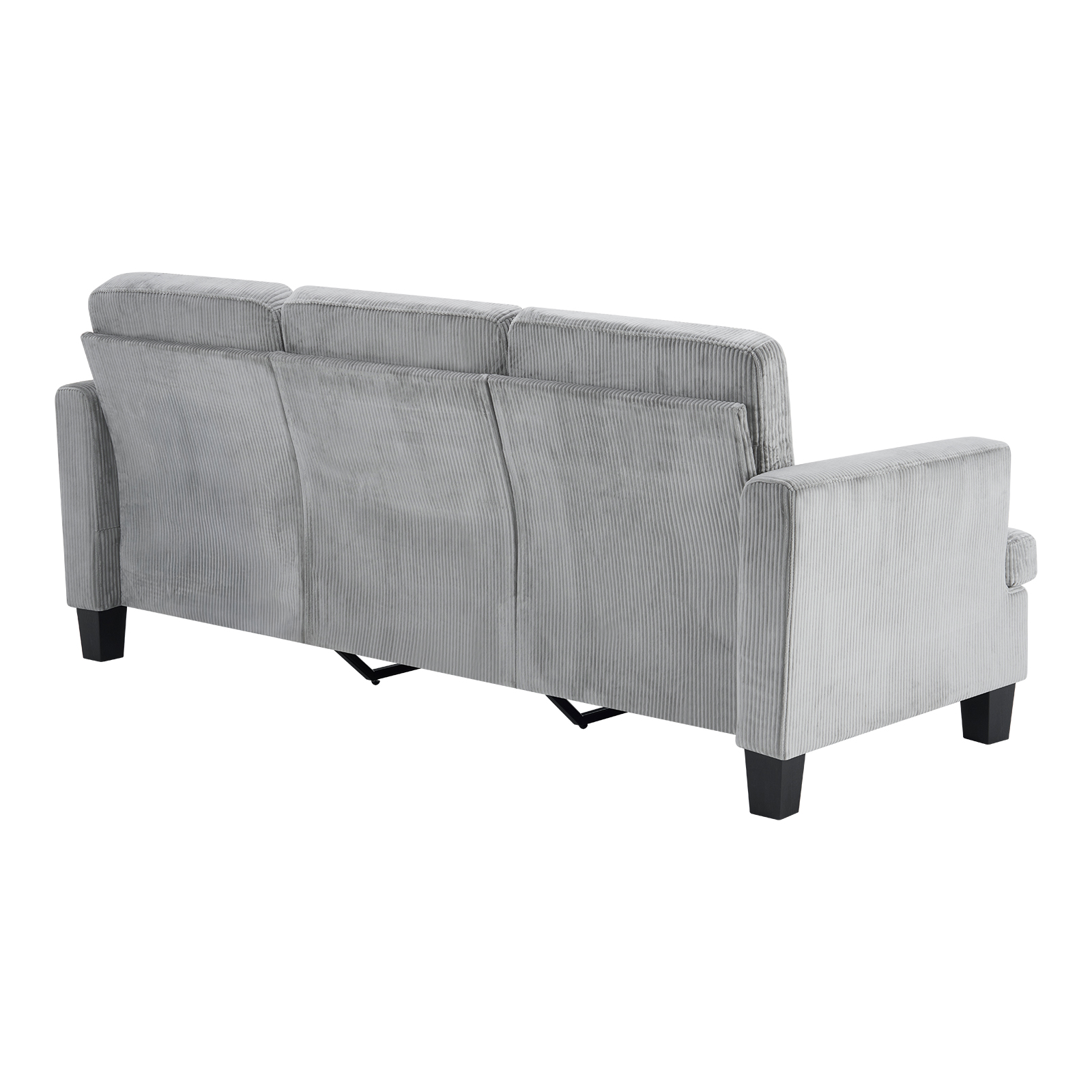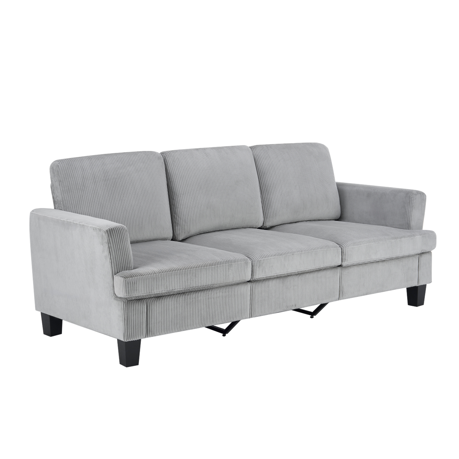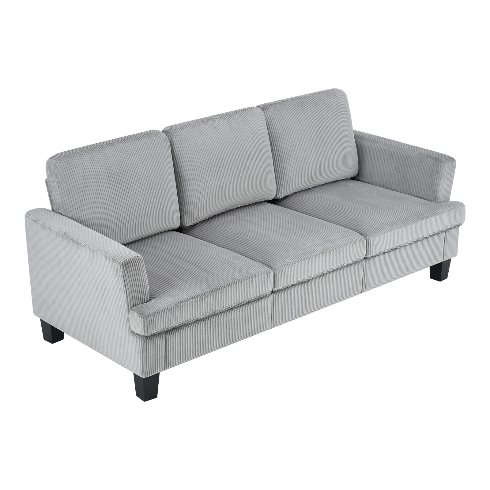 The 84-inch gray corduroy sofa redefines comfort and style in any living space. This stylish three seat sofa is upholstered with ribbed textural corduroy that is unique and gives this piece some special flair. Ergonomically designed with a cushioned, supportive backrest and comfortable arms, this sofa is a great showpiece for your room. Ideal for entertaining or everyday rest and relaxation, in your living room, office, bedroom, or lounge. Embrace both functionality and elegance with this chic addition to your home. 35.00-inch h x 83.50-inch w x 35.00-inch d.