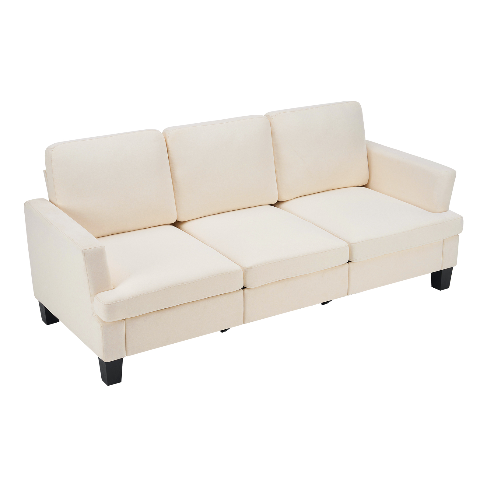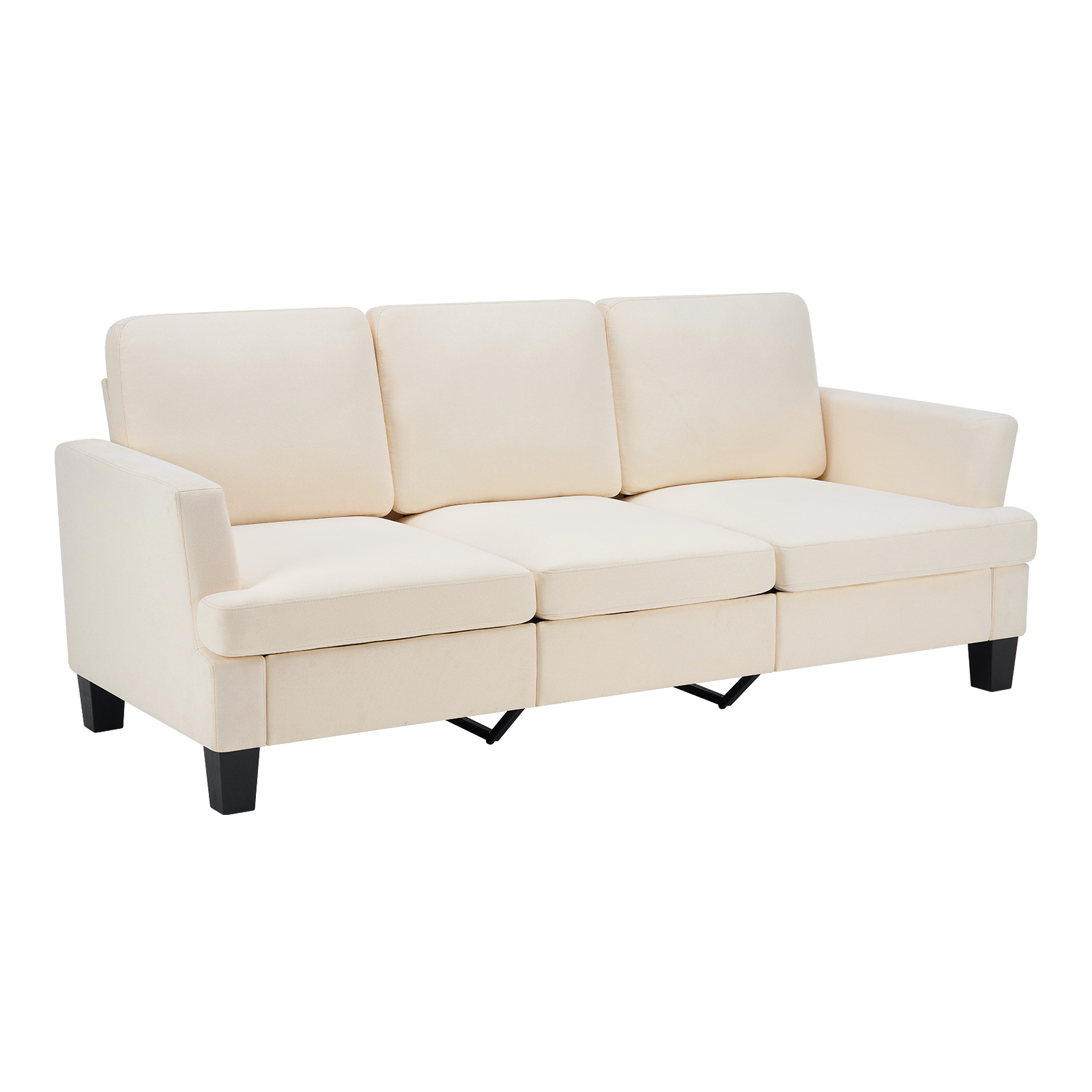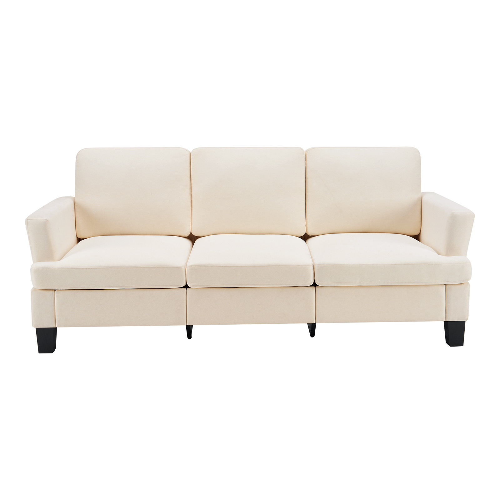 The 84-inch beige linen sofa combines style and comfort in a contemporary design. This stylish three seat sofa is upholstered with durable linen that is soft and comfortable to the touch. Ergonomically designed with cushion supportive backrest and comfortable arms, this sofa is a great showpiece for your room. Ideal for entertaining or everyday rest and relaxation, in your living room, office, bedroom, or lounge. Elevate your home decor with a blend of sophistication and comfort found in this exquisite sofa. 35.00-inch h x 83.50-inch w x 35.00-inch d.