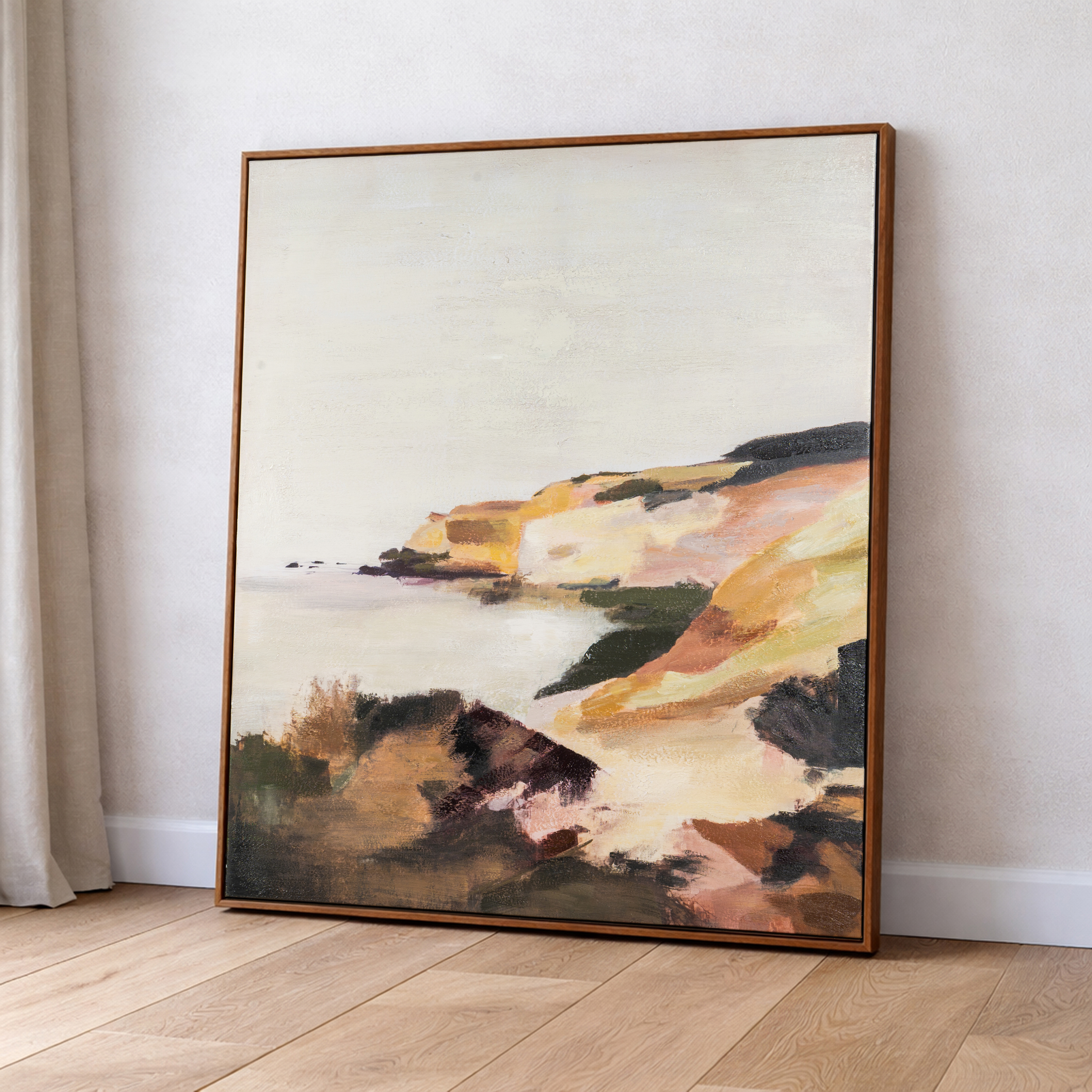 tidal journey hand painted, tidal journey hand painted dark, brown floater frame wall art, hand painted dark brown floater, painted dark brown floater frame |
