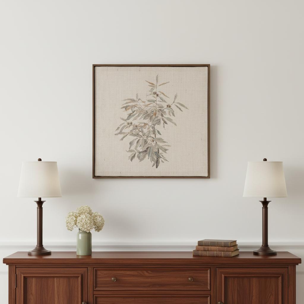 This botanical whisper i hand painted dark brown floater frame wall art will add a beautiful decorative accent to your decor. This acrylic painting is a way to express your artistic style and add some fashion to your walls. Not a print, this fabulous work of art is truly hand-painted. Reproduced for you on canvas, this hanging decorative accent will be a trendy and fashionable way to dress your walls. Hang on your wall to add some up to date fashion and decoration. Instantly liven up your space with this art that brings color and dimension to your walls. 24.00-inch h x 24.00-inch w x 2.00-inch d.