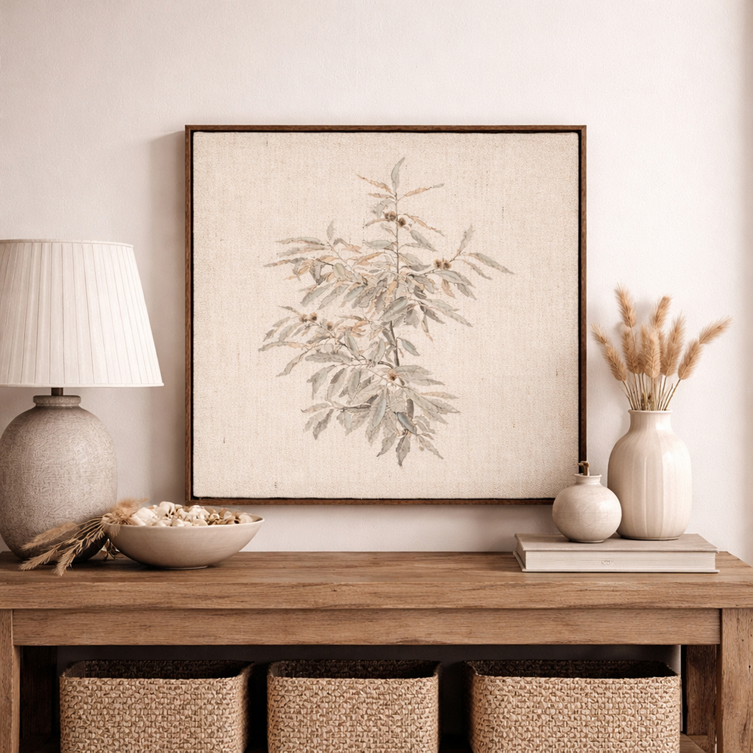 botanical whisper hand painted, botanical whisper hand painted dark, brown floater frame wall art, whisper hand painted dark brown, hand painted dark brown floater |
