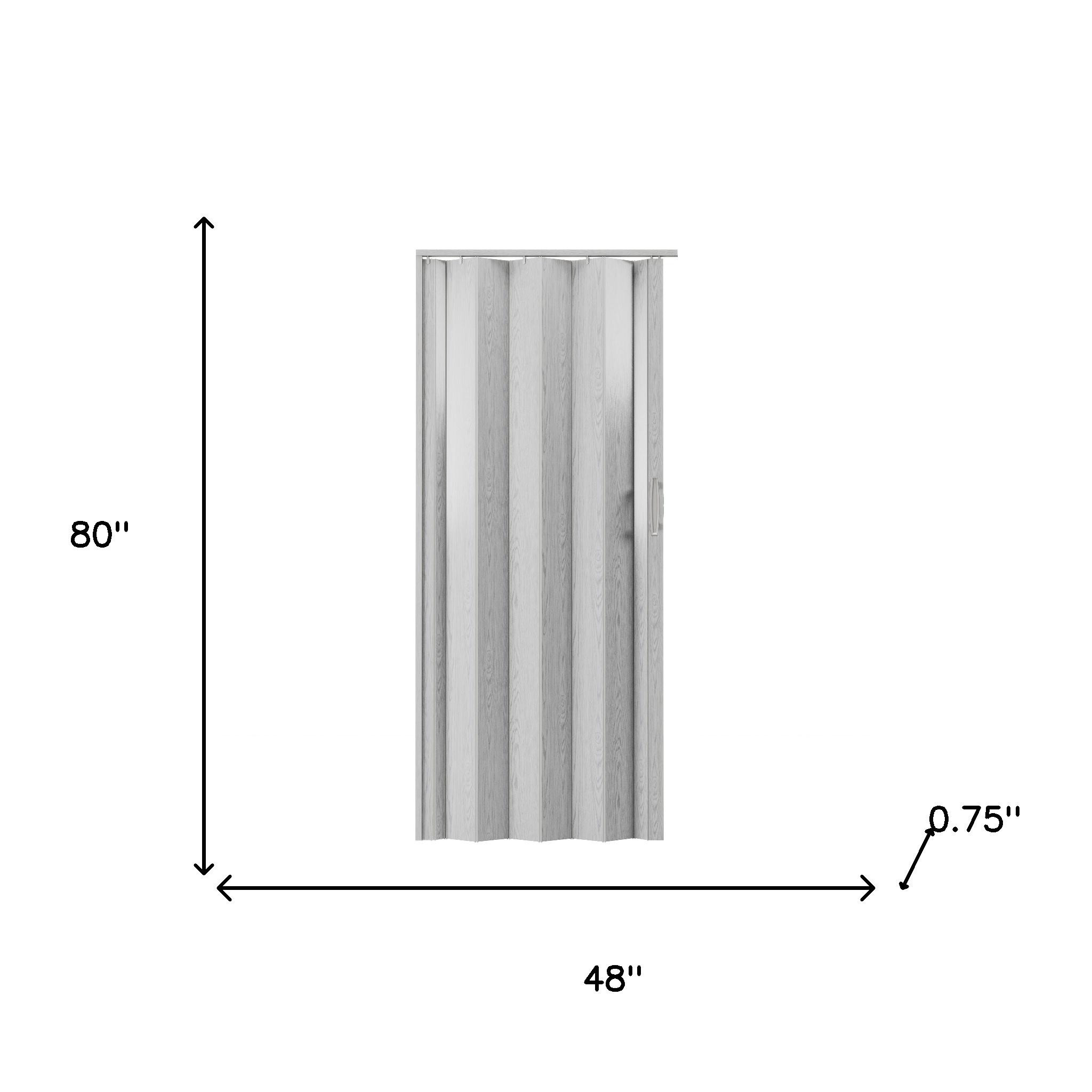 The 80-inch gray pvc accordion door offers a stylish and functional solution for any space. Crafted from durable materials, this door is designed to withstand daily use while maintaining its sleek appearance. Its accordion design allows for easy opening and closing, making it perfect for areas where space is at a premium. The gray finish adds a modern touch that complements various decor styles, ensuring it blends seamlessly into your home environment. With its lightweight construction, installation is a breeze, enhancing the versatility of your living area. This door provides an excellent balance of aesthetics and practicality, making it an ideal choice for creating flexible living spaces. 80.00-inch h x 48.00-inch w x 0.75-inch d.