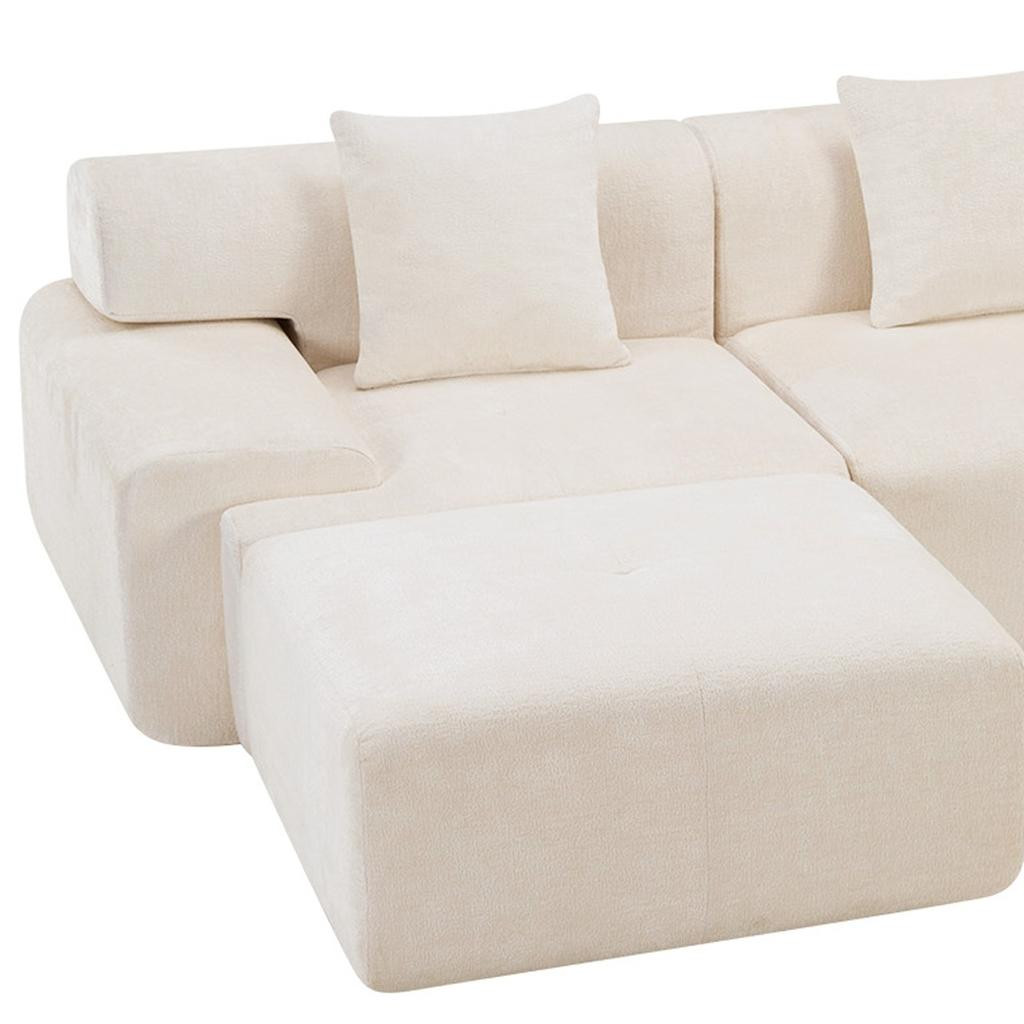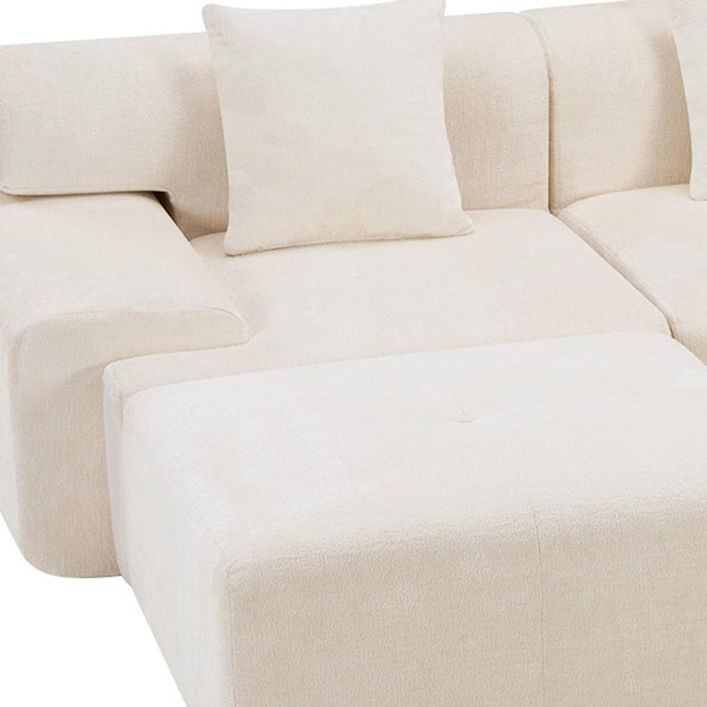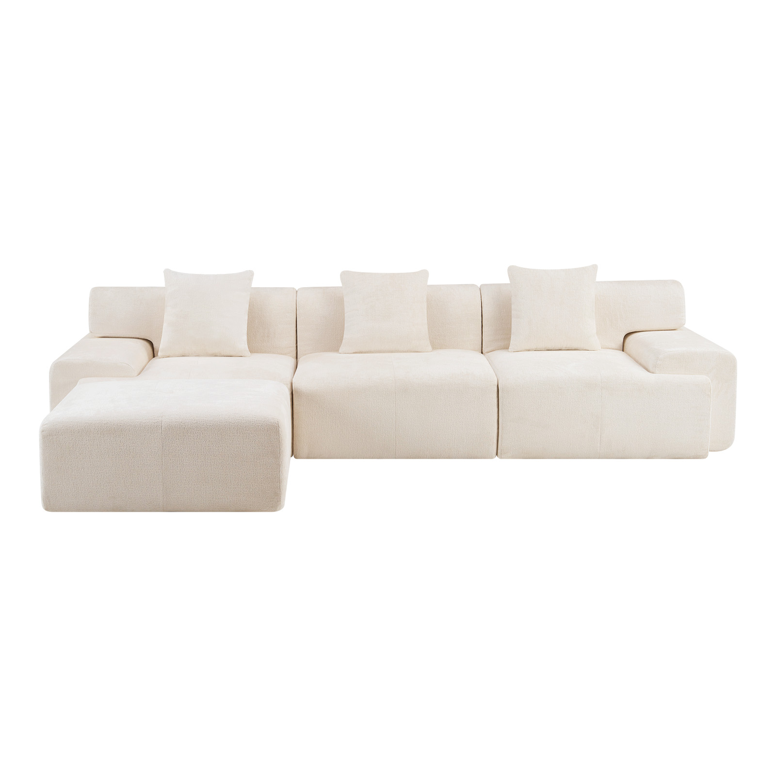 chenille modular sofa chaise ottoman, modular sofa chaise ottoman, beige chenille modular sofa chaise, 118" beige chenille modular sofa, sofa chaise ottoman toss pillows |