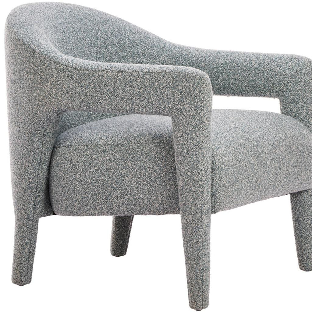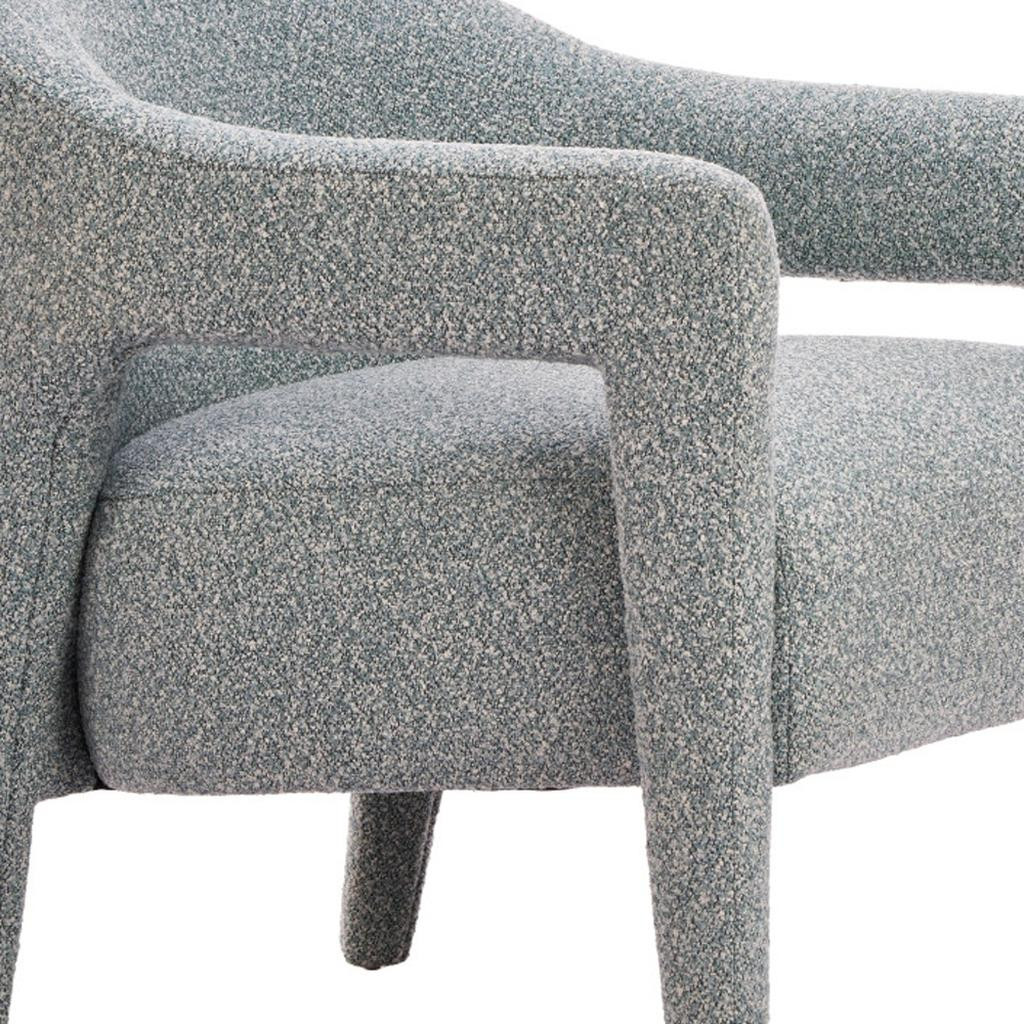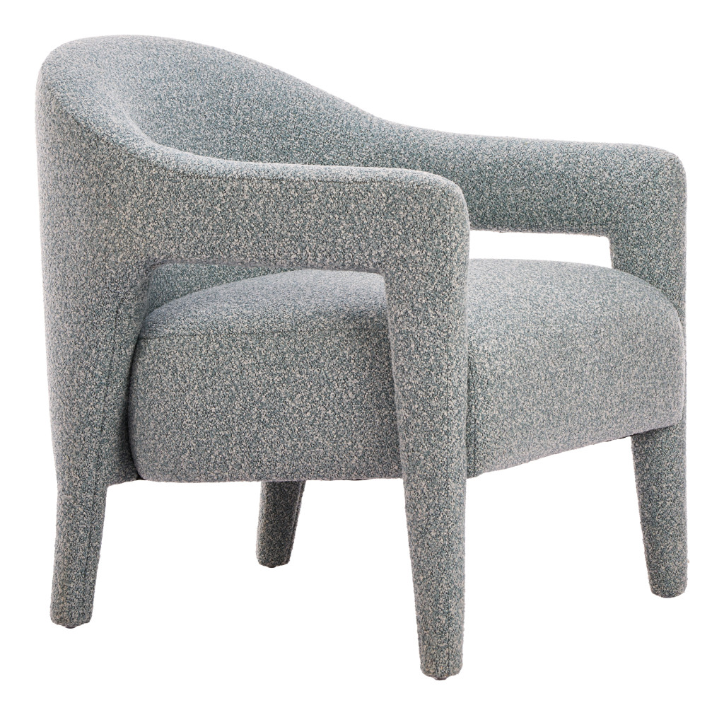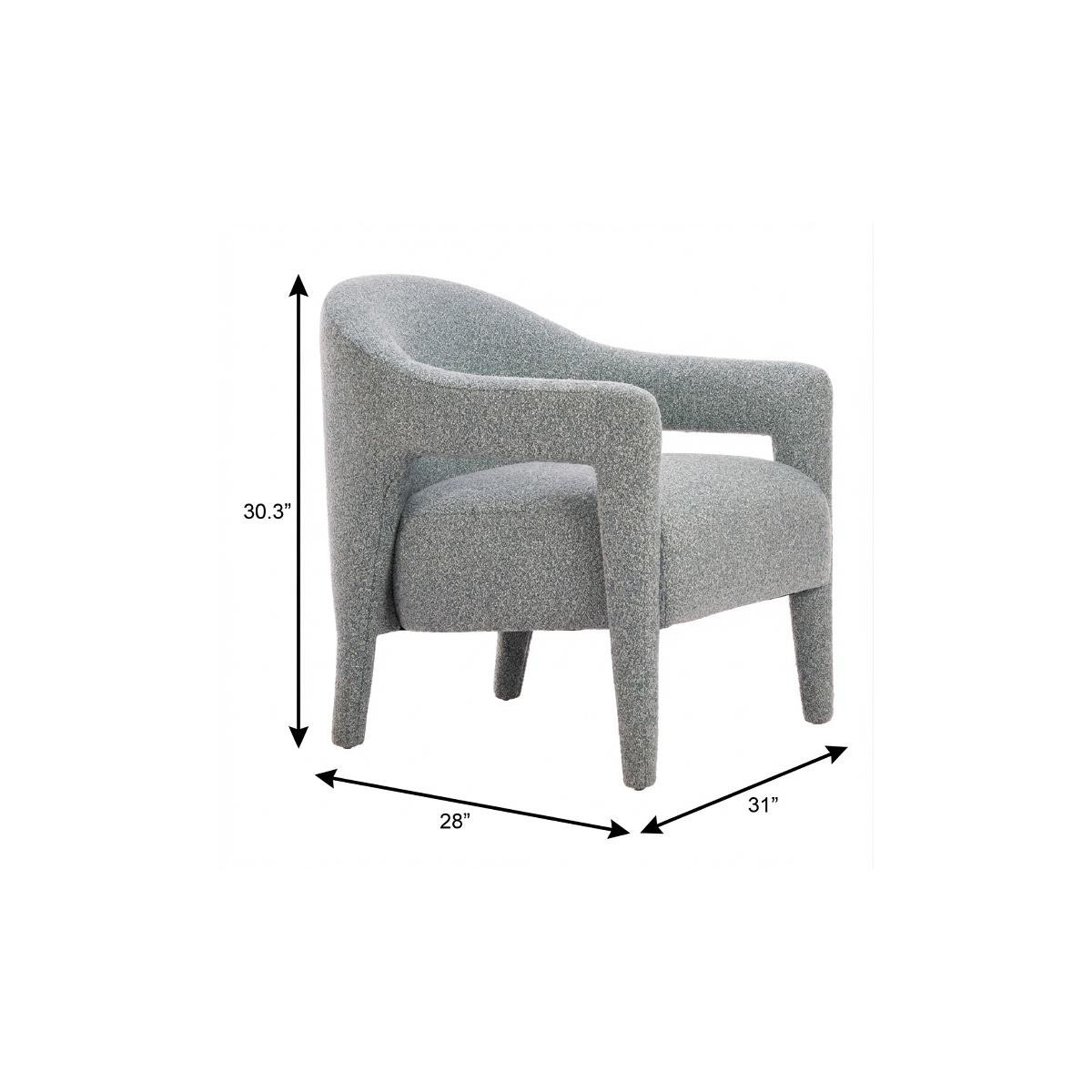 This 28-inch blue fabric and solid wood arm chair will add a beautiful decorative accent to your decor. This gorgeous solid color blue arm chair is masterfully upholstered in durable fabric. The high quality solid wood inner frame flaunts convenient armrests and a tight back that are complimented by soft and comfortable cushioning. 30.30-inch h x 28.00-inch w x 31.00-inch d.