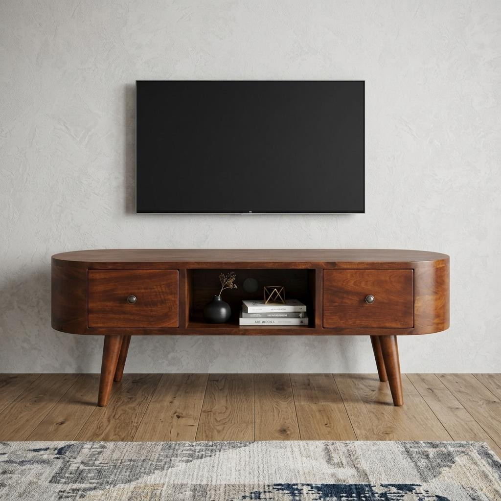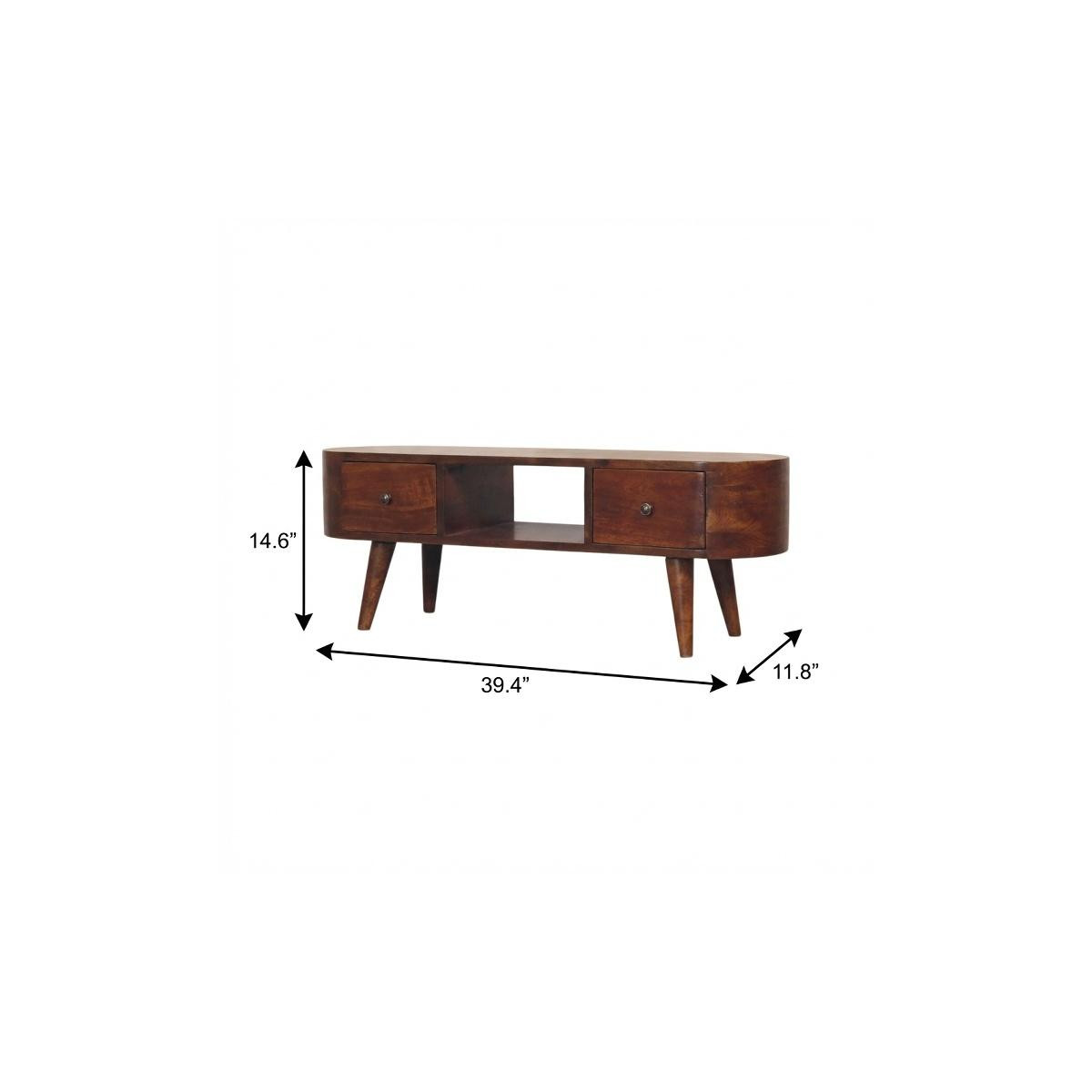 Create the ultimate blend of style, function, and design with this 39-inch brown solid wood enclosed and open storage tv stand. Designed to be sturdy and long lasting, this versatile furniture piece is crafted from durable solid wood and features a modern design style. A built-in cable and wire management helps to keep those unseemly wires at bay. Ideal for tv placement and storage in your living room, bedroom or office. 14.60-inch h x 39.40-inch w x 11.80-inch d.