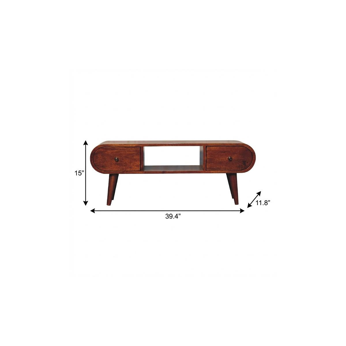 Create the ultimate blend of style, function, and design with this 39-inch brown solid wood enclosed and open storage tv stand. Designed to be sturdy and long lasting, this versatile furniture piece is crafted from durable solid wood and features a modern design style. A built-in cable and wire management helps to keep those unseemly wires at bay. Ideal for tv placement and storage in your living room, bedroom or office. 15.00-inch h x 39.40-inch w x 11.80-inch d.