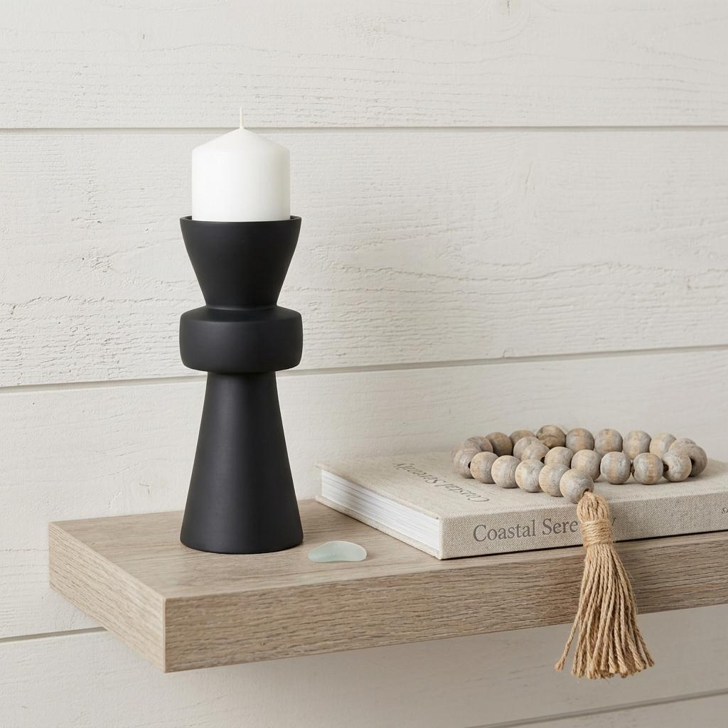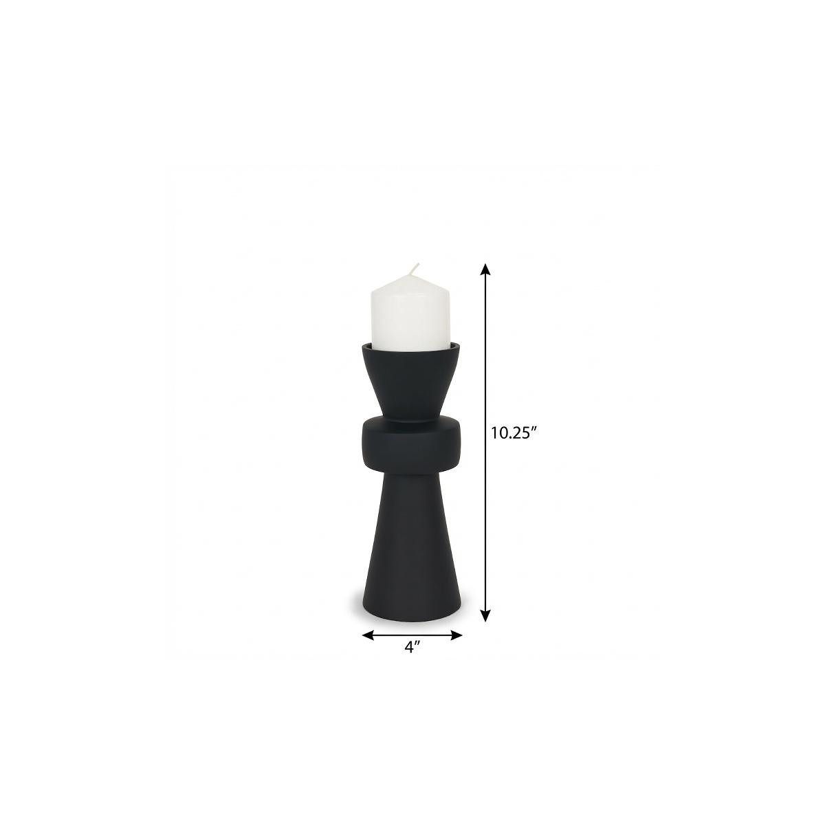 This 10-inch black metal tabletop votive candle holder is perfect for placing on dining room tables or living areas for an effortless ambient aesthetic. Hand finished by skilled craftsmen and designed to add a glamorous glow to any event or table setting. Add an extra pop of personality to every corner of your home with this gorgeous candleholder candleholders are a decorative accent on their own, with or without candles. 10.25-inch h x 4.00-inch w x 4.00-inch d.
