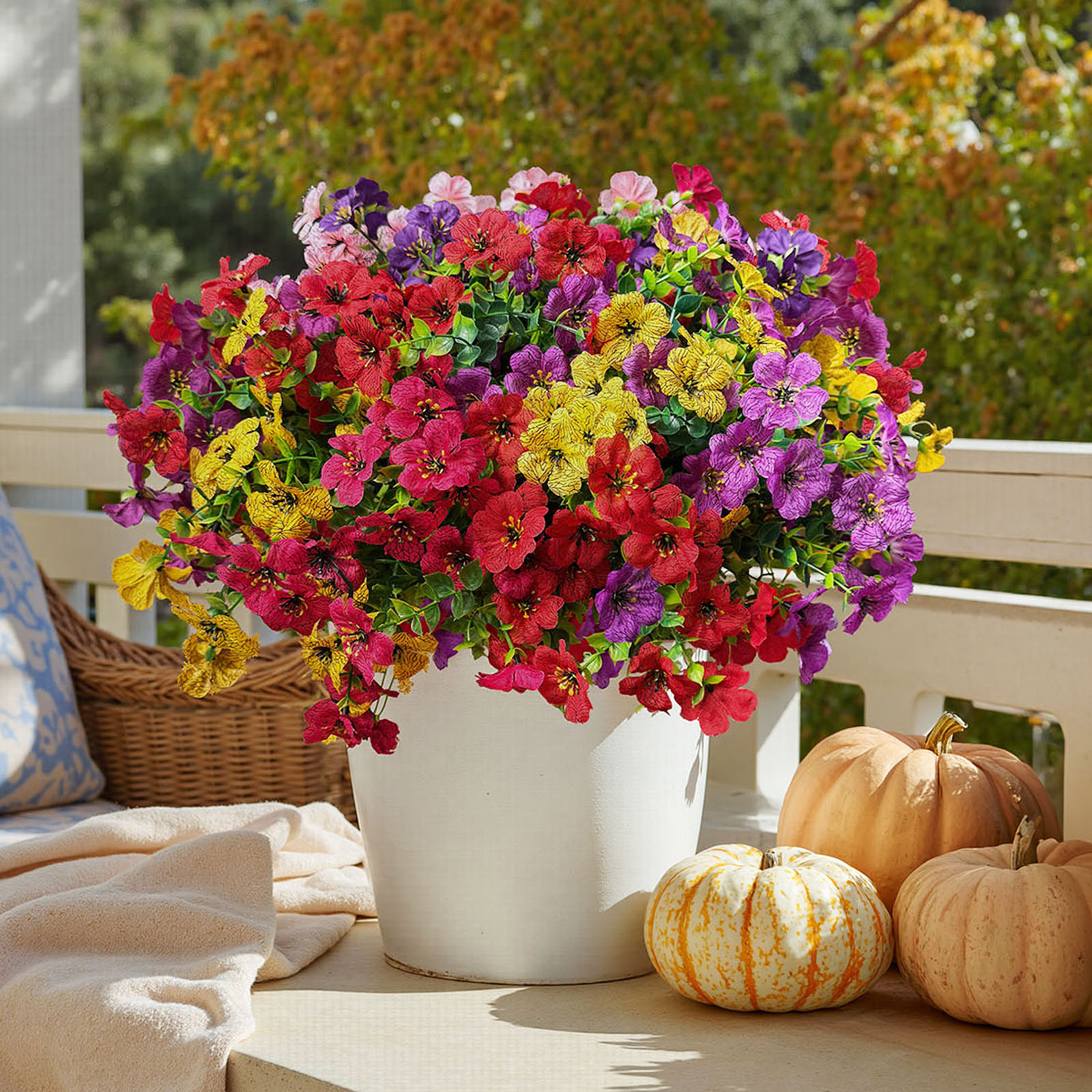 14-inch red purple light pink yellow and magenta artificial adds a vibrant touch to any tabletop setting. This artificial plant features an eye-catching mix of colors, including red, purple, light pink, yellow, and magenta, bringing life to your decor without the need for maintenance. Crafted from durable plastic, it is designed to withstand outdoor use, making it a versatile choice for various occasions. Perfect for birthdays or simply enhancing your living space, this unique piece seamlessly fits into any decor style. With its delightful color palette, this artificial plant is perfect for those looking to add a splash of brightness to their home or garden without the hassle of upkeep. Enjoy the beauty of nature all year round. 14.00-inch h x 7.50-inch w x 7.50-inch d.