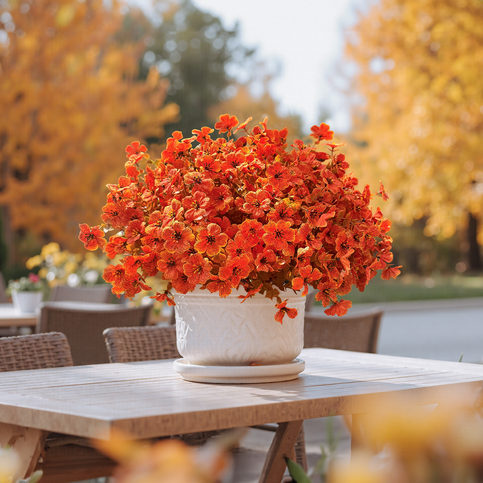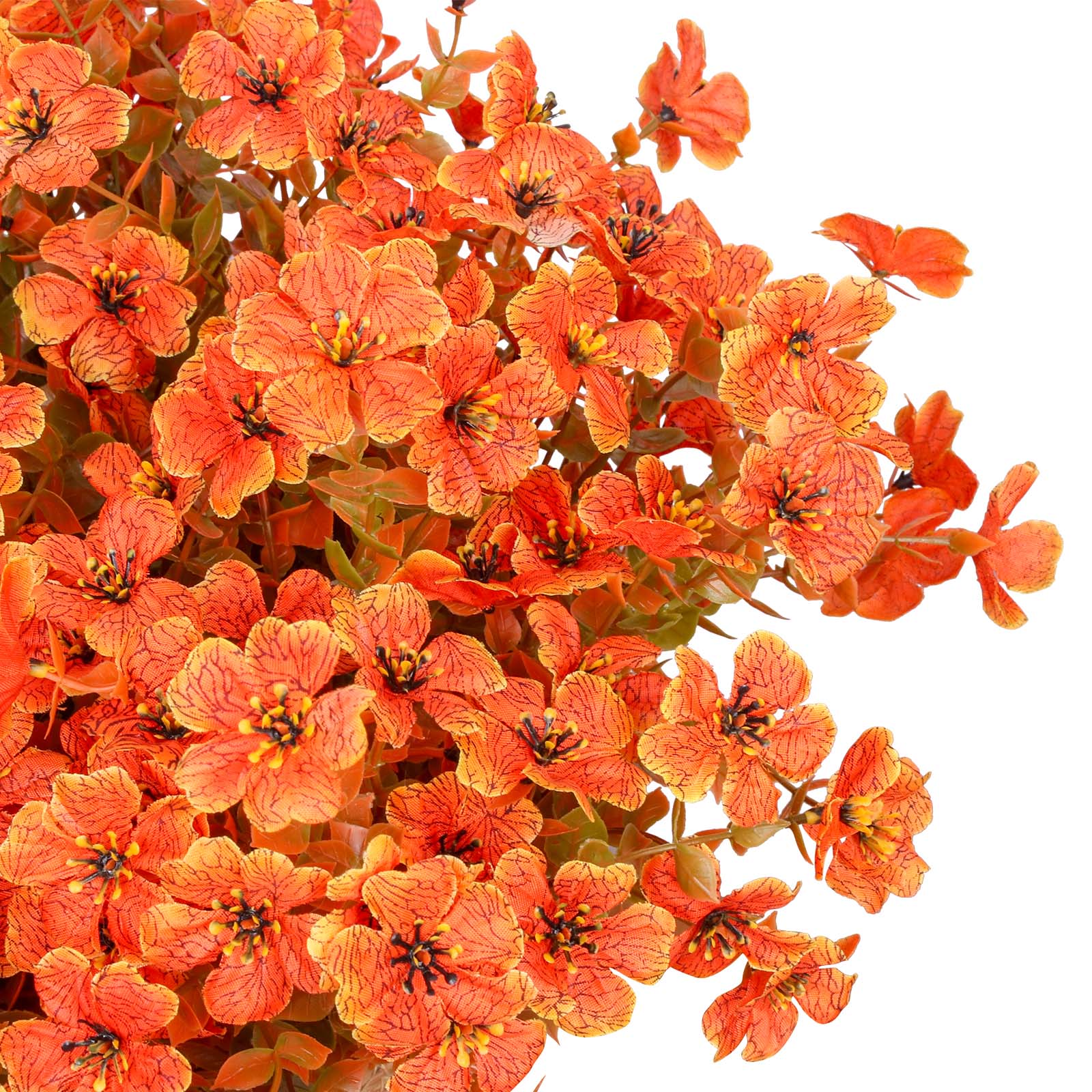 The 14-inch orange artificial is a vibrant addition to your home decor. This tabletop plant brings a splash of color with its cheerful orange hues, making it ideal for brightening up any space. Crafted from durable plastic, it offers the charm of nature without the maintenance, ensuring it stays fresh and appealing all year round. Perfect for special occasions like birthdays, this decorative piece adds a festive touch to celebrations. Designed for both indoor and outdoor use, it can enhance your patio or living room with ease. Its unique species classification adds an artistic flair to your collection, bringing a modern twist to traditional plant decor. Enjoy the beauty of nature in your home without the hassle of upkeep. 14.00-inch h x 7.50-inch w x 7.50-inch d.