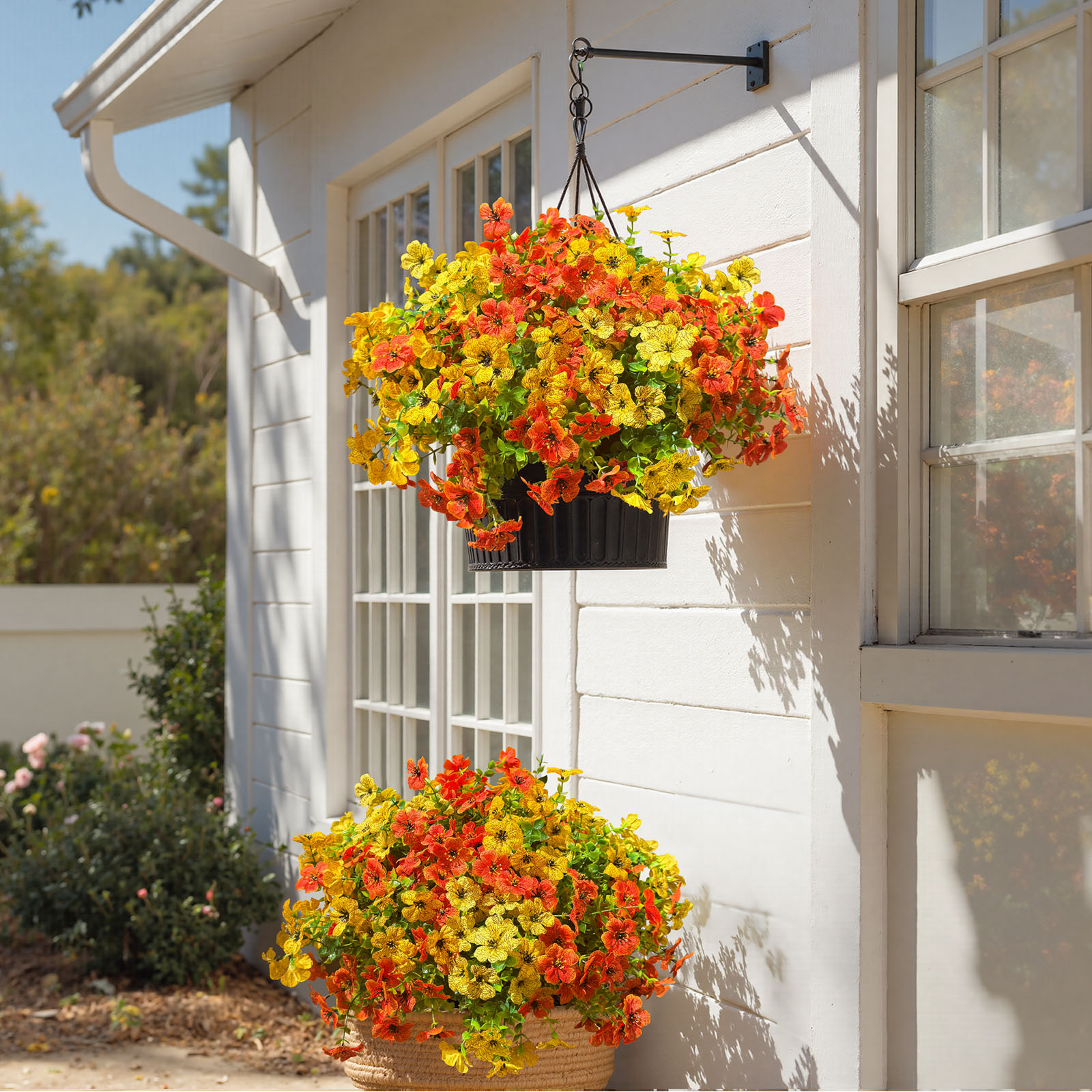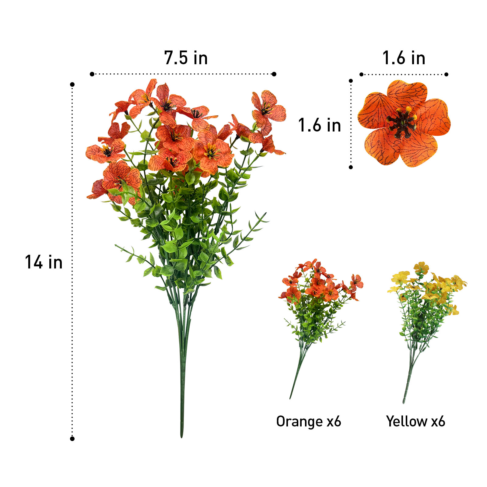 The 14-inch yellow and orange artificial plant brings a vibrant touch to any space. Its lively colors of yellow and orange brighten up tabletops, making it a perfect decorative piece for birthdays or festive occasions. This artificial plant is designed with durability in mind, crafted from high-quality plastic to ensure a long-lasting beauty that remains fresh year-round. Suitable for both indoor and outdoor use, it adds a splash of color wherever placed. Ideal for those who appreciate the charm of greenery without the maintenance, this plant is versatile enough to complement various decor styles, enhancing your living environment effortlessly. Bring life to your home or garden with this stunning artificial addition. 14.00-inch h x 7.50-inch w x 7.50-inch d.