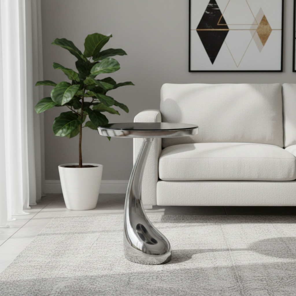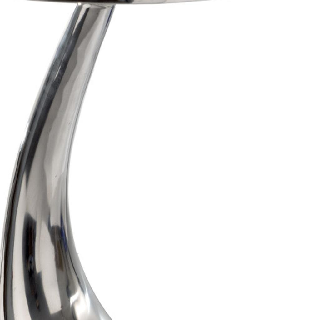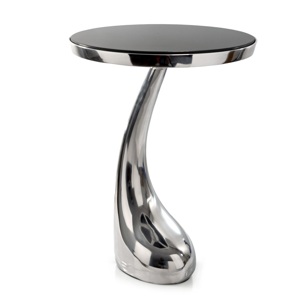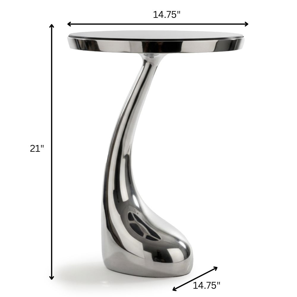 Show off your exquisite taste with this 21-inch silver granite and aluminum free form pedestal end table. The silver coloration runs throughout this good looking aluminum and granite table. Side tables are a great way to flank your sofa, use as an accent next to your favorite chair, or can even be used bedside. You can also use it as an entryway table to hold your keys. 21.00-inch h x 14.75-inch w x 14.75-inch d.