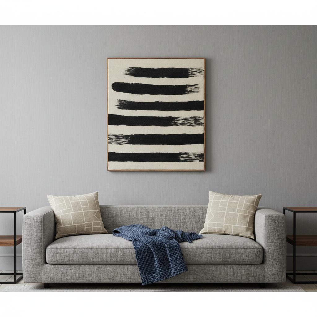 Rollins Large Cream w/ Black Stripes Wool Framed Art |