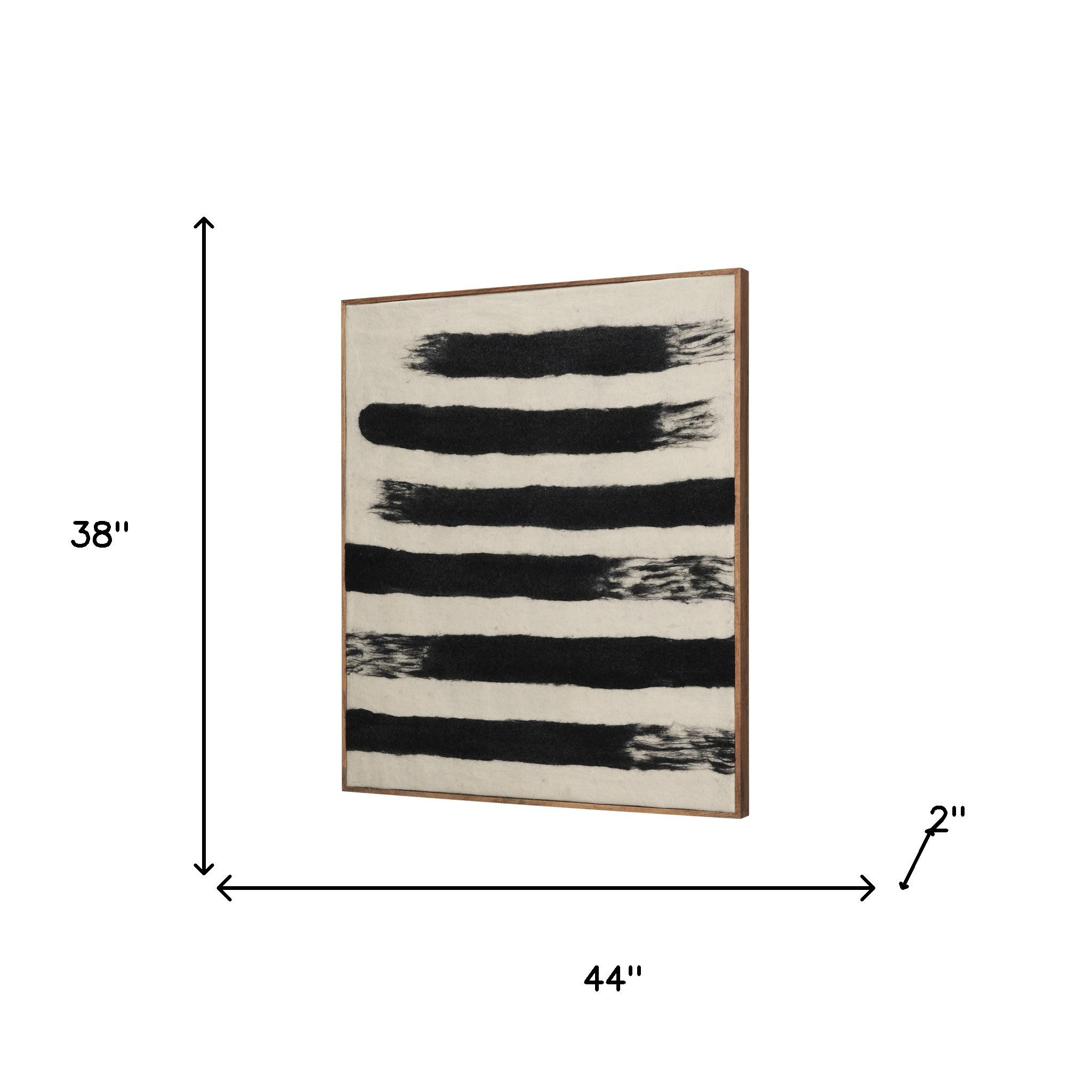 Unique and decorative, this rollins large cream w and black stripes wool framed art brown framed wall art will leave a lasting impression. The mixed media photography style makes this photographic art appealing and gives it visual interest. Reproduced for you on wood, this hanging decorative accent will be a trendy and fashionable way to dress your walls in a rustic and modern farmhouse vibe. Adding this hanging wall art to your space to make your room feel more finished and attractive. Utilize this opportunity to create a focal point in the room with this fabulous wall decor option. 38.00-inch h x 44.00-inch w x 2.00-inch d.