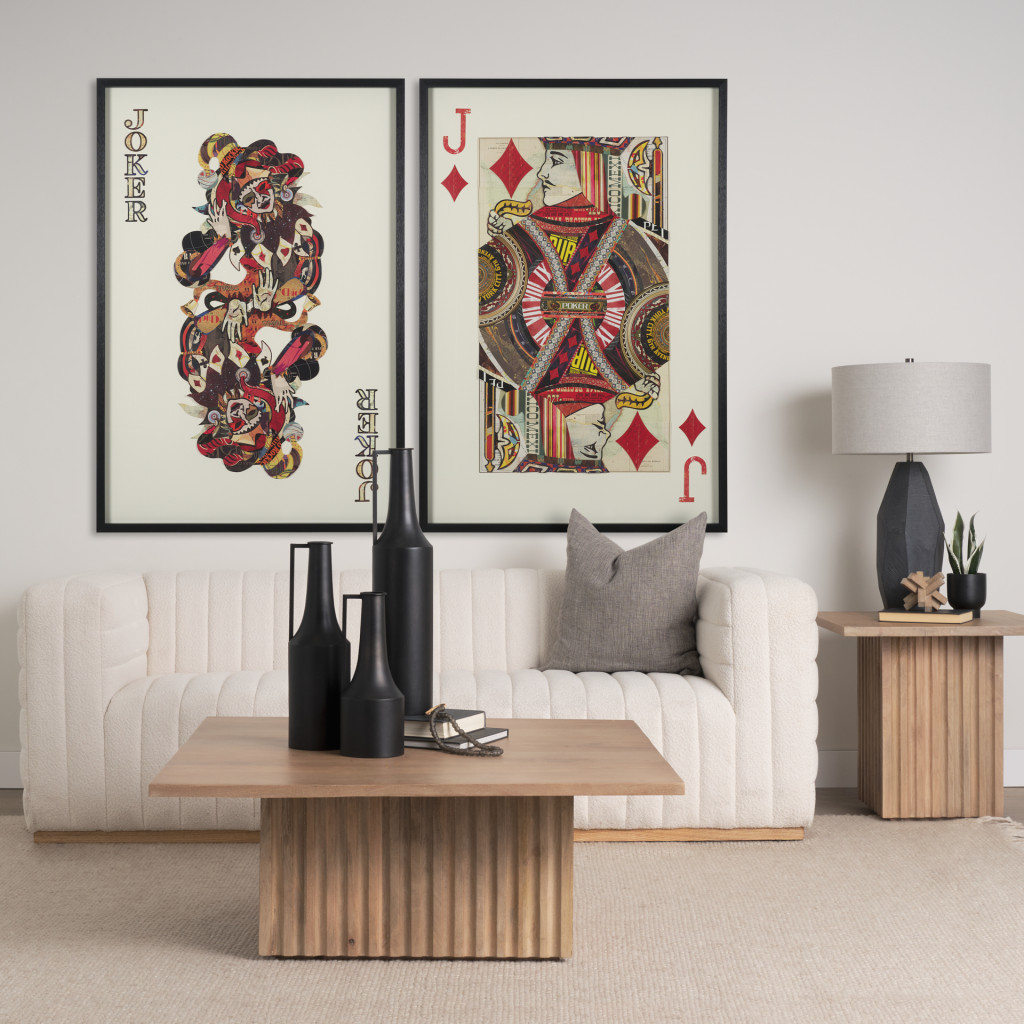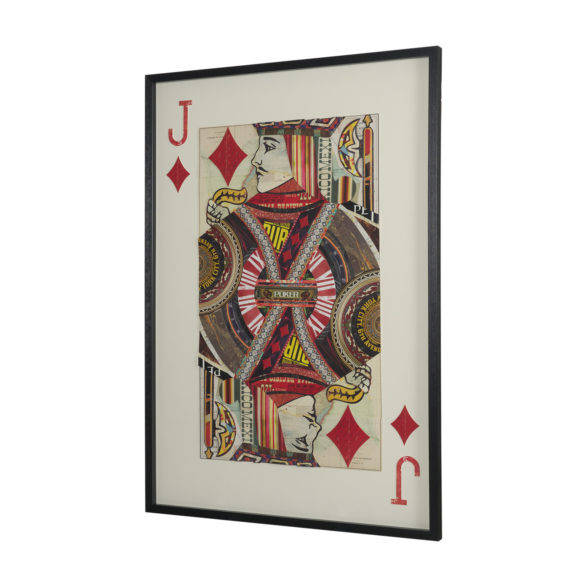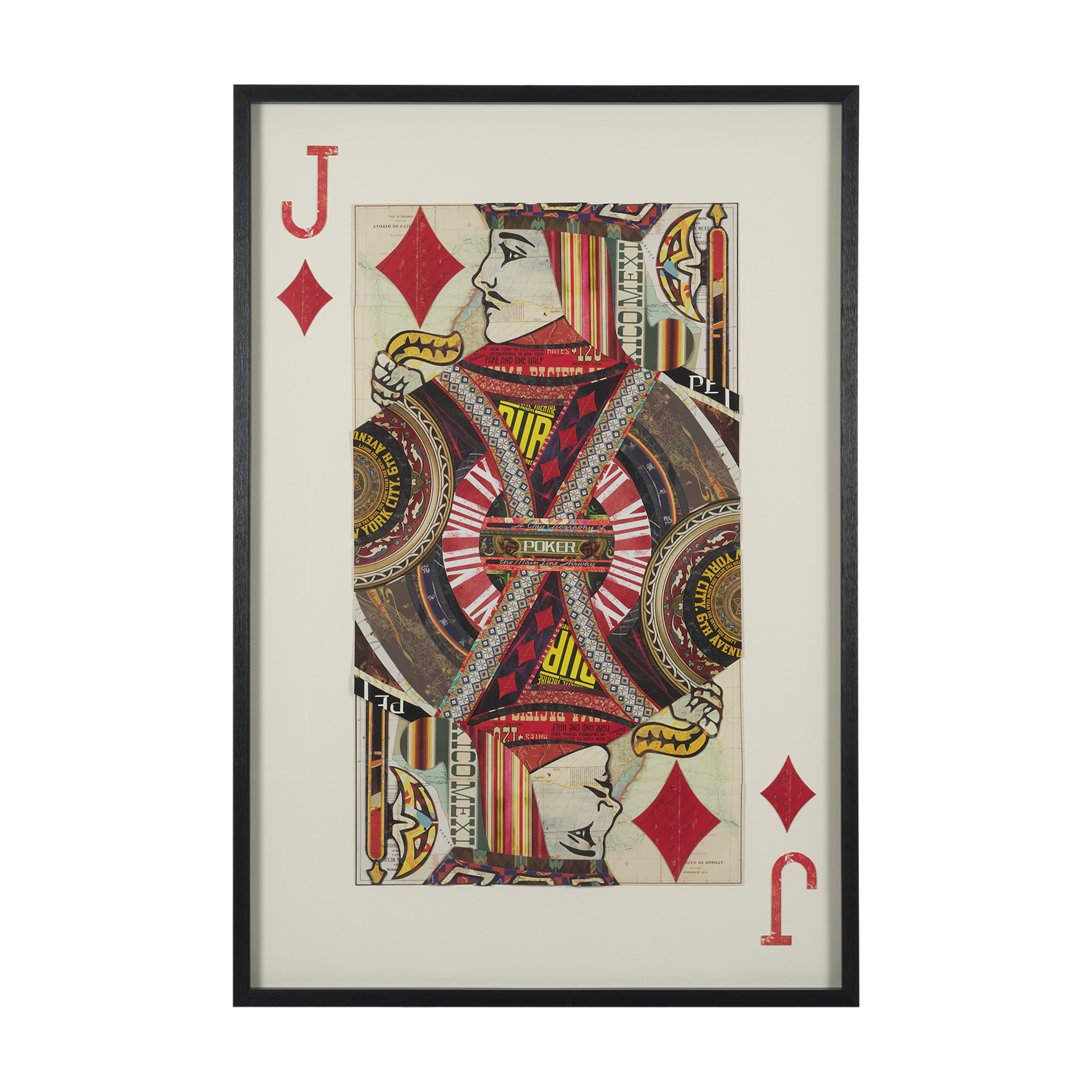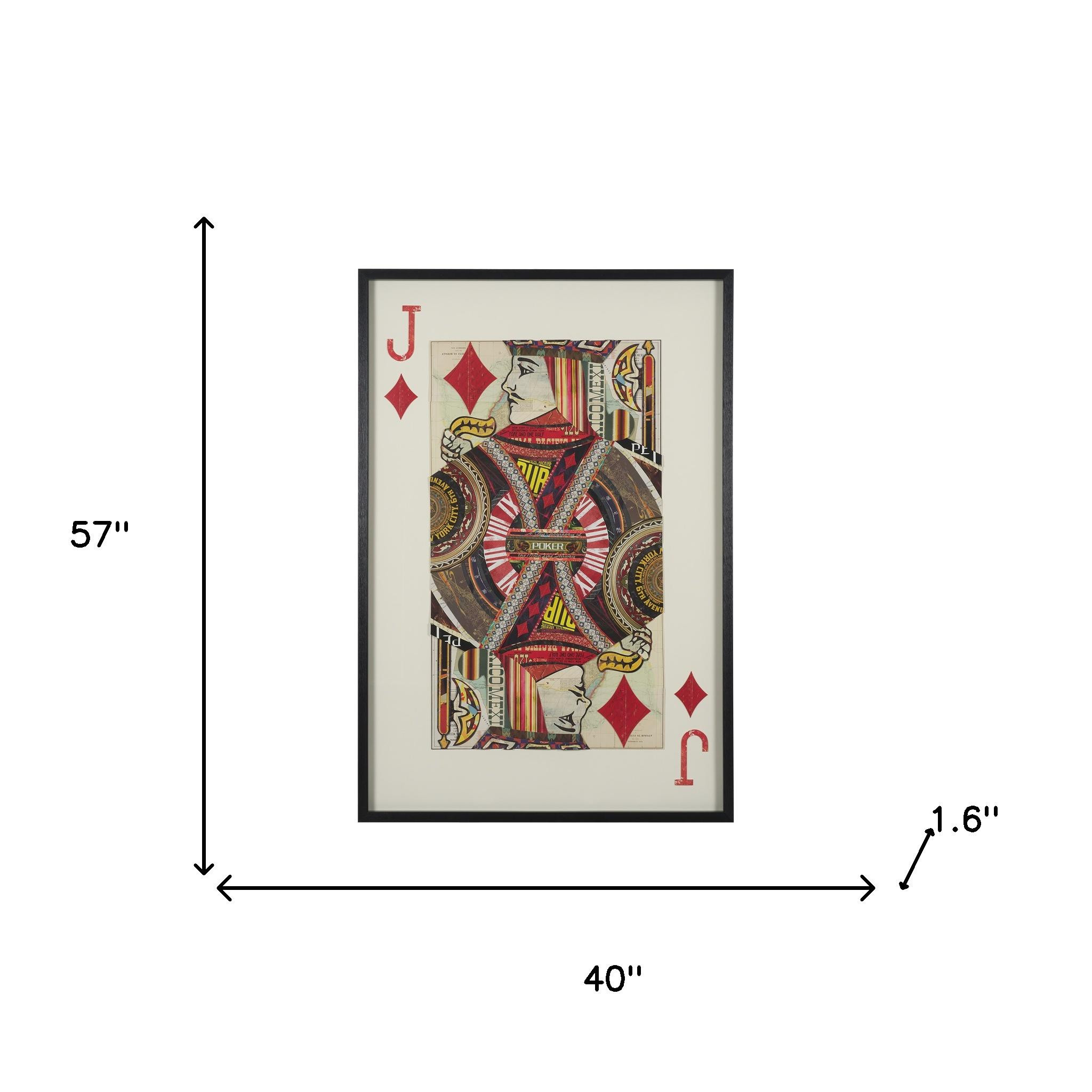 The jack of diamonds playing card a paper mosaic collage framed art under glass black framed wall art is the perfect decorative accessory for your home. This oil painting is a way to express your artistic style and add some fashion to your walls. Reproduced for you on glass, this hanging decorative accent will be a trendy and fashionable way to dress your walls. Adding this hanging wall art to your space to make your room feel more finished and attractive. Instantly liven up your space with this art that brings color and dimension to your walls. 57.00-inch h x 40.00-inch w x 1.60-inch d.