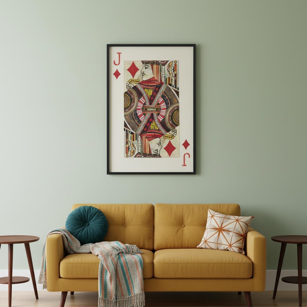 Jack of Diamonds Playing Card a Paper Mosaic Collage Framed Art under Glass |