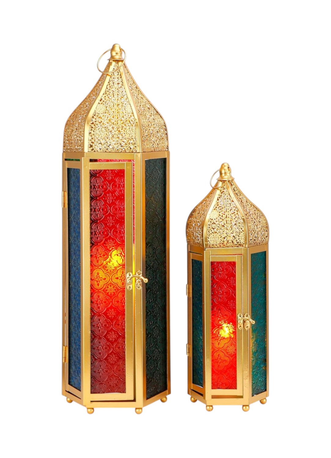 This set of two gold glass floor candelabra candle holders is perfect for creating an elegant atmosphere on your tabletop or mantel. Sold as a set of 2, this candleholder makes both the perfect gift and functional, decorative accent. This candleholder is the perfect illuminating design to accent your space in style. Candleholders are an attractive way to turn a simple candle into a piece of décor. 22.50-inch h x 6.50-inch w x 6.50-inch d.