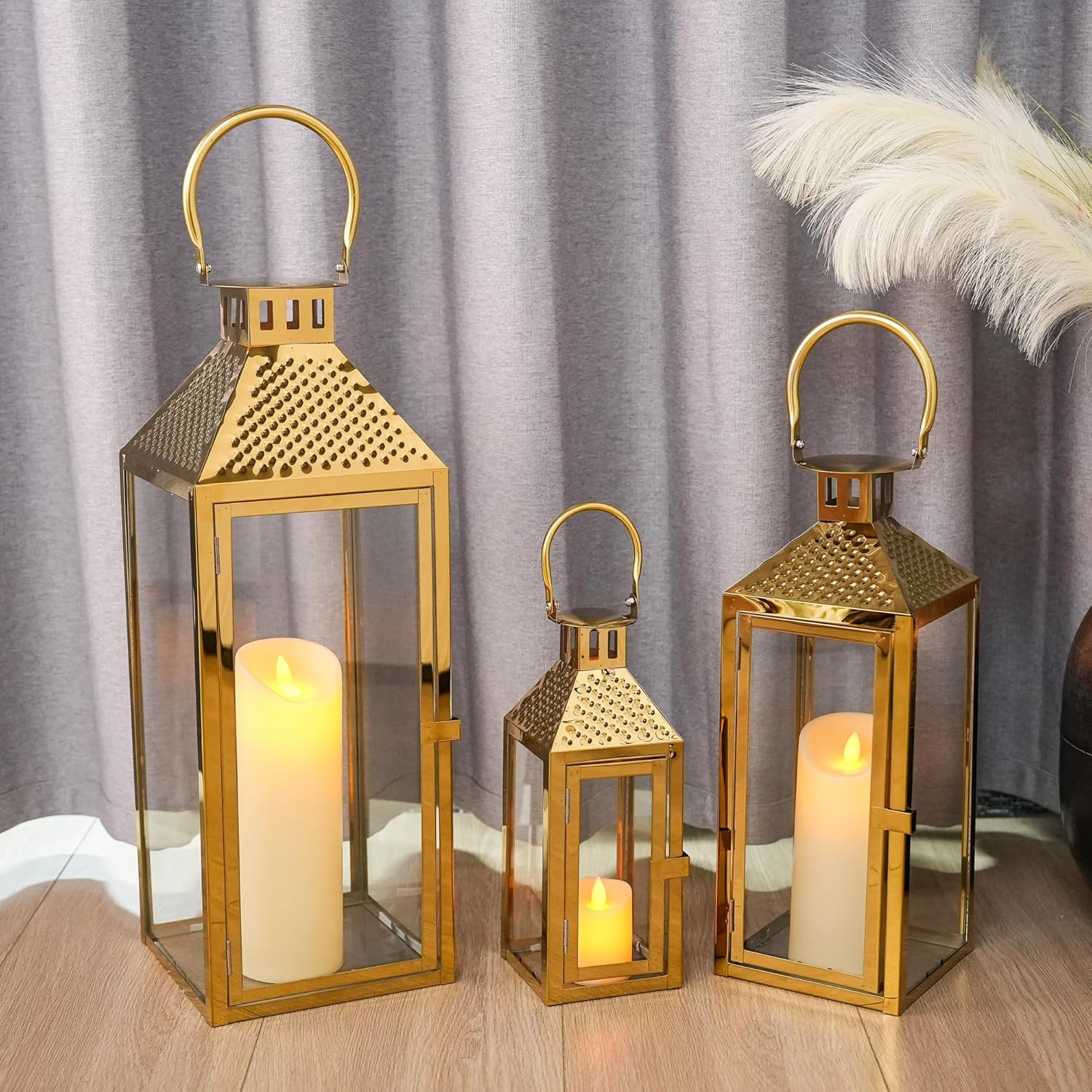 This set of three gold glass floor candelabra candle holders is a centerpiece you're sure to cherish for seasons to come. Sold as a set of 3, this candleholder gives your space radiant illumination. This candleholder is the perfect illuminating design to accent your space in style. Candleholders are an attractive way to turn a simple candle into a piece of décor. 19.50-inch h x 7.00-inch w x 7.00-inch d.