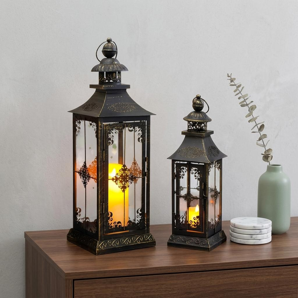 This set of two black glass floor candelabra candle holders is a centerpiece you're sure to cherish for seasons to come. This holder arrives in a set of 2. this candleholder is the perfect illuminating design to accent your space in style. Candleholders are a decorative accent on their own, with or without candles. 21.50-inch h x 7.00-inch w x 7.00-inch d.