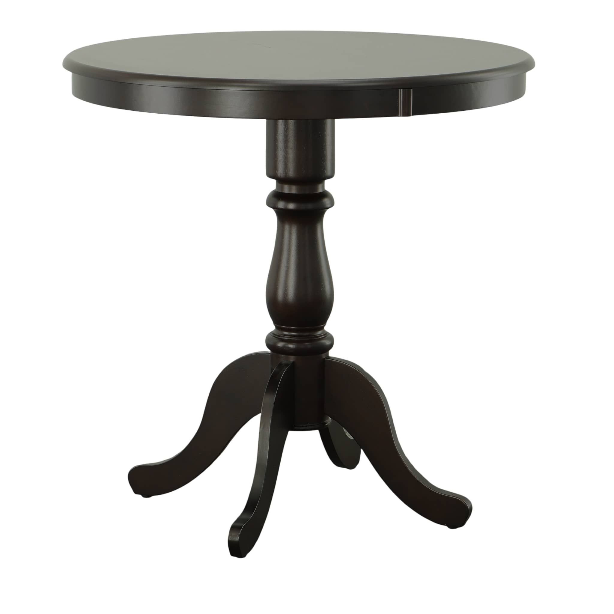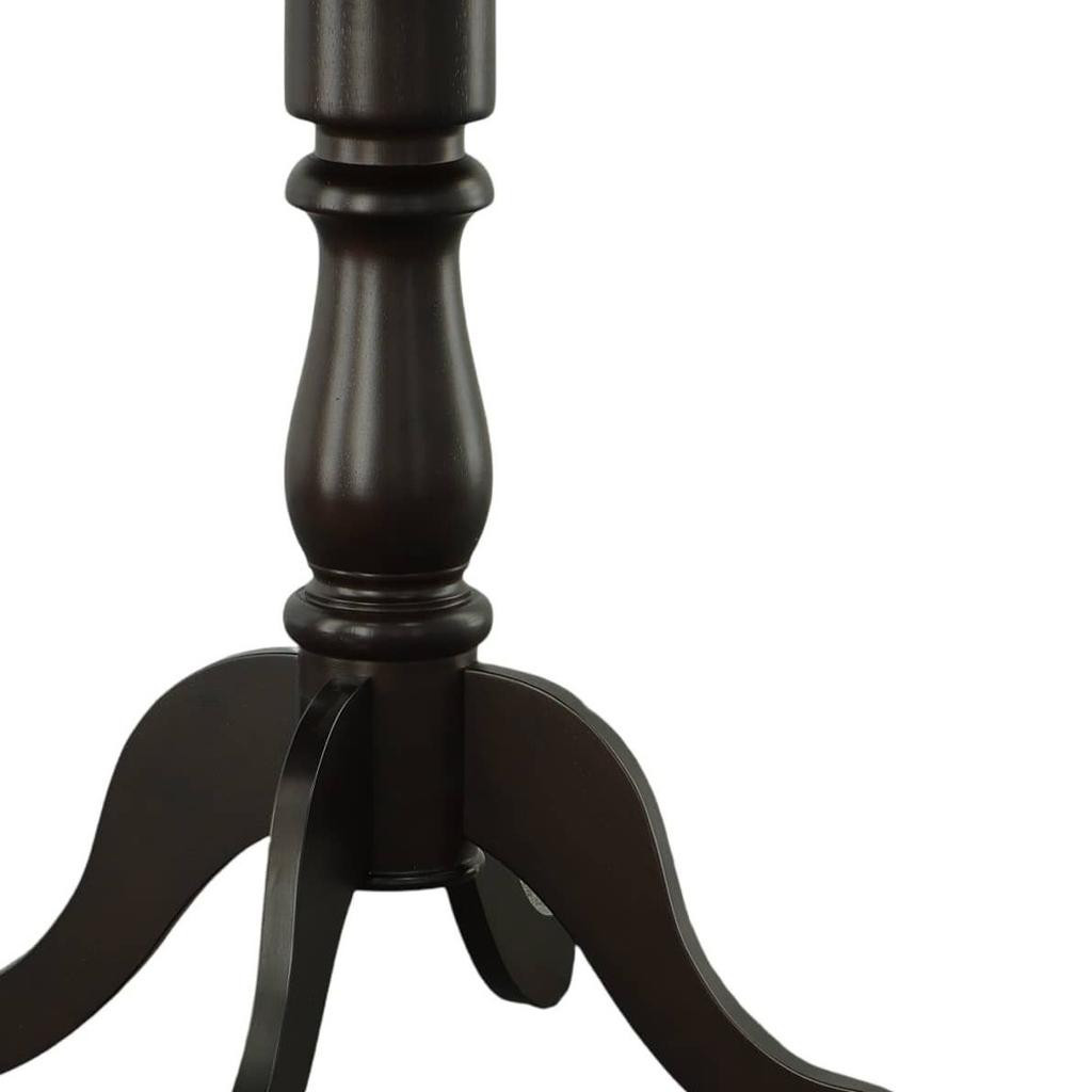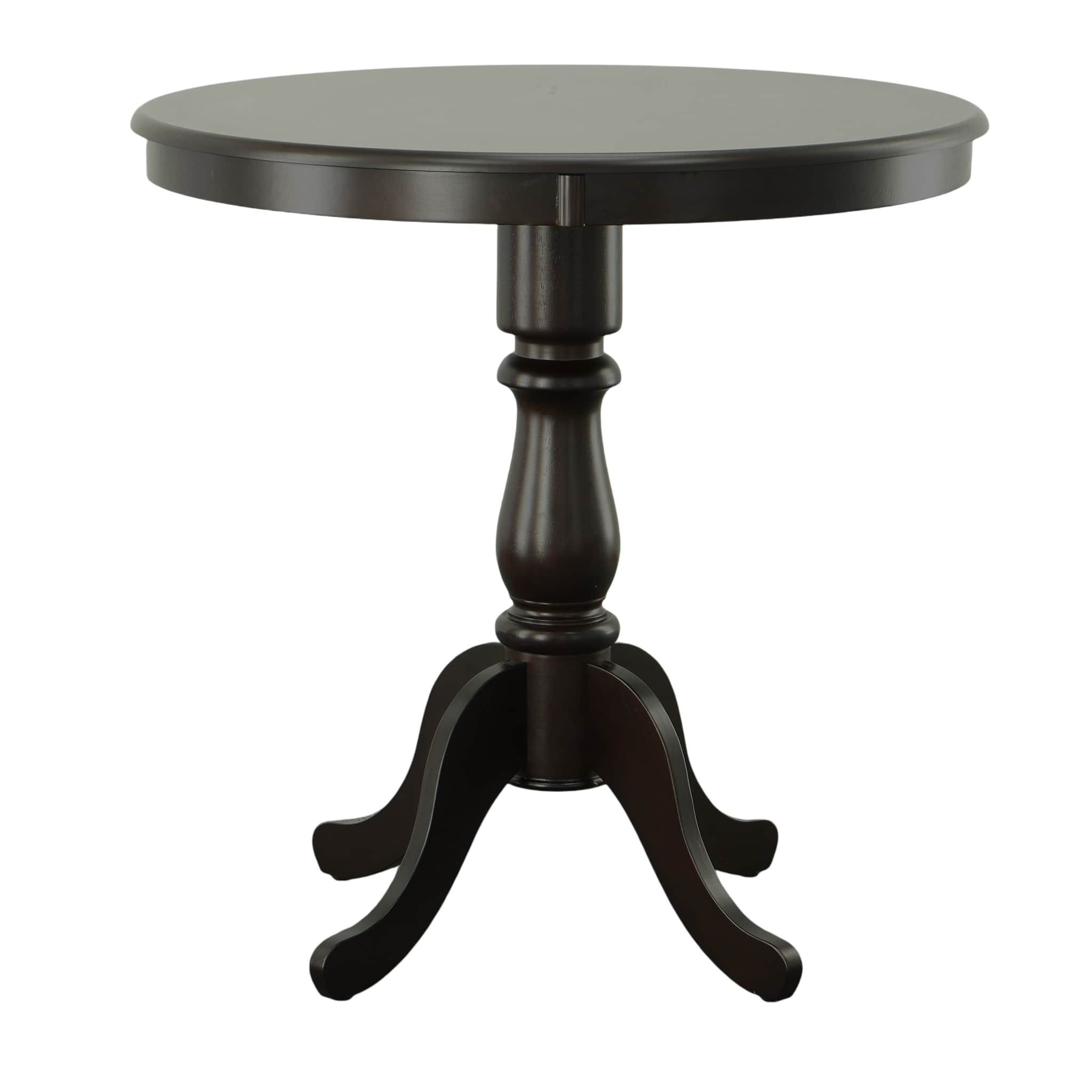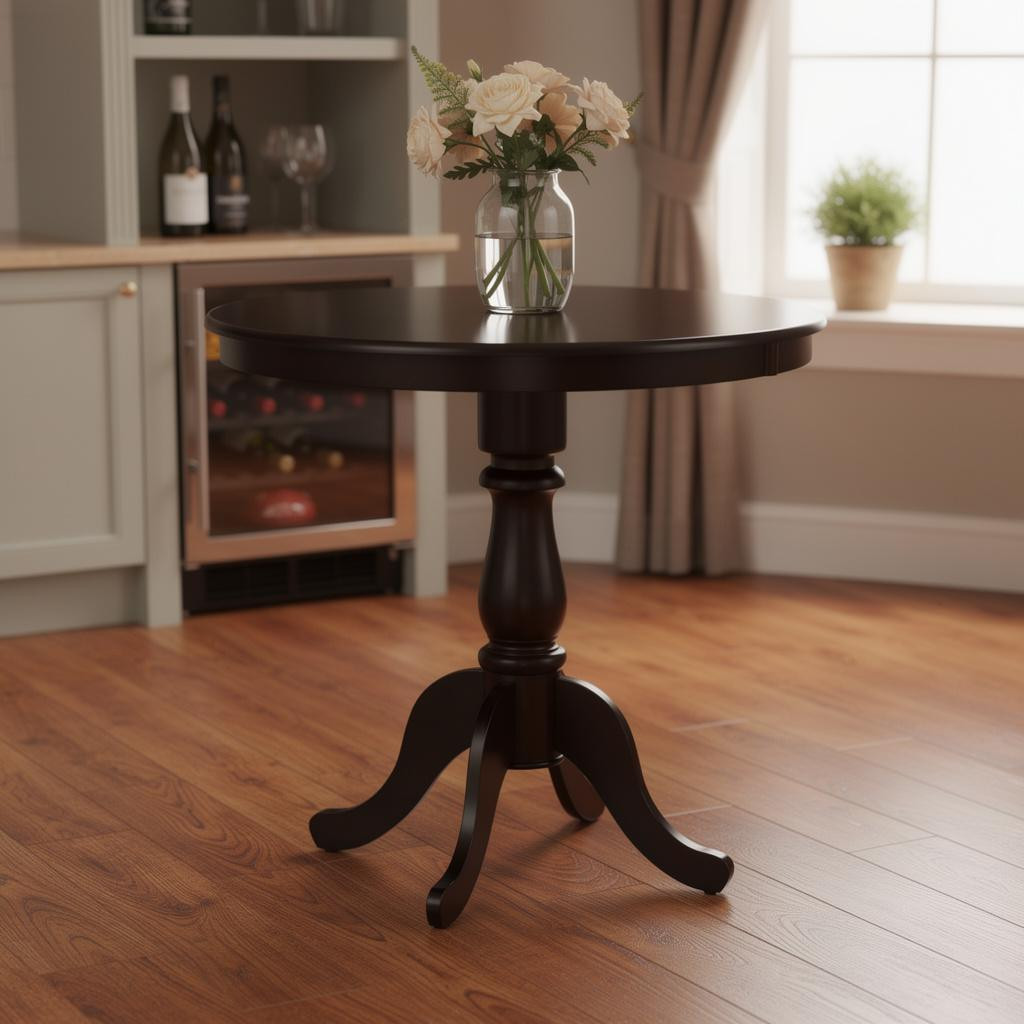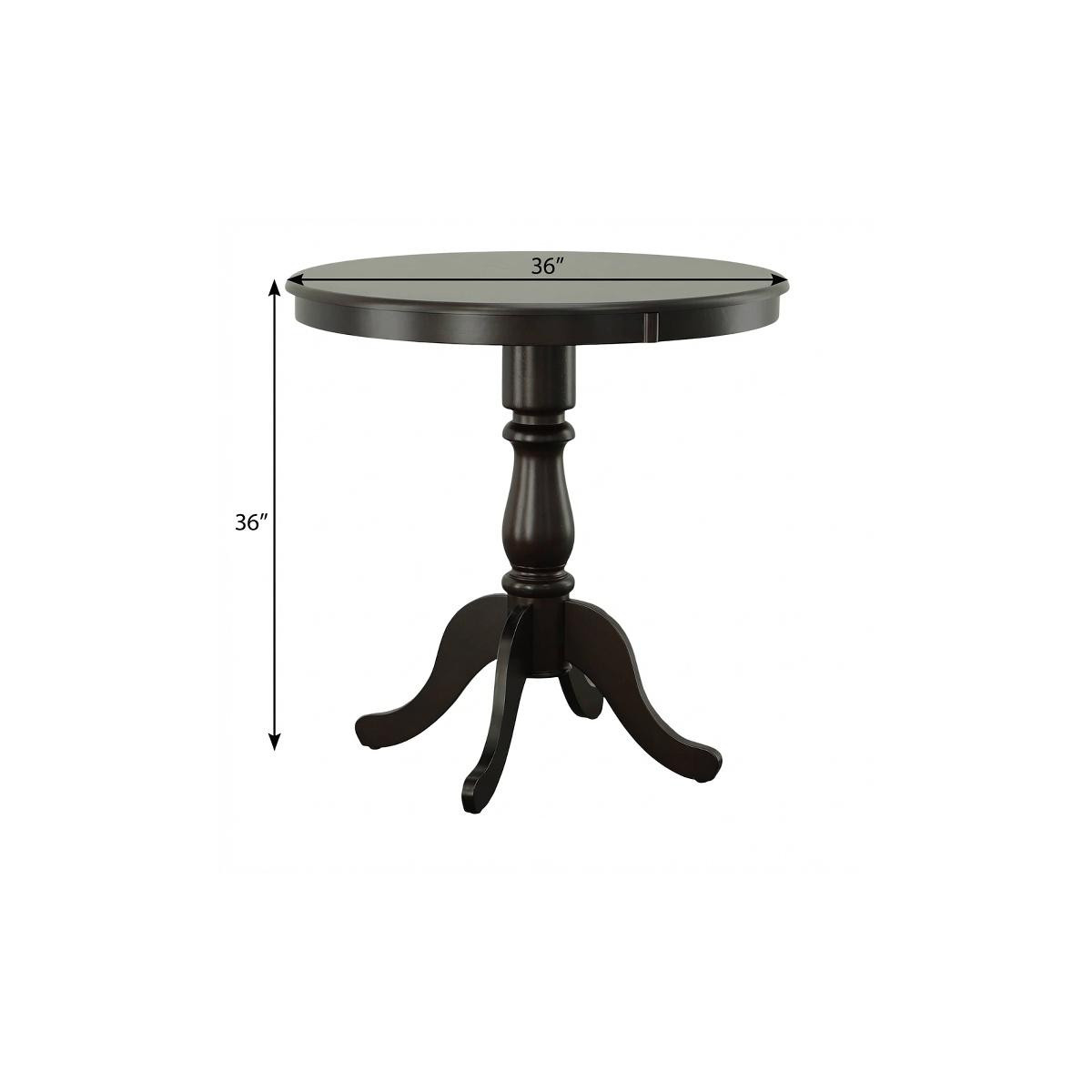 The 36-inch espresso solid wood rounded bar table combines traditional style with a timeless design. This round table features a solid wood top and base, both finished in a rich espresso color that adds warmth to any space. Handcrafted with care, it showcases purposeful distressing for a unique, rustic charm. The fixed tabletop provides stability, while the pedestal base ensures easy seating arrangements. Perfect for intimate gatherings or casual dining, this versatile piece enhances the atmosphere of your bar or restaurant. With its sturdy construction and elegant finish, it invites guests to linger and enjoy their meals in style. This bar table is a stunning centerpiece that beautifully marries functionality with aesthetic appeal. 36.00-inch h x 36.00-inch w x 36.00-inch d.