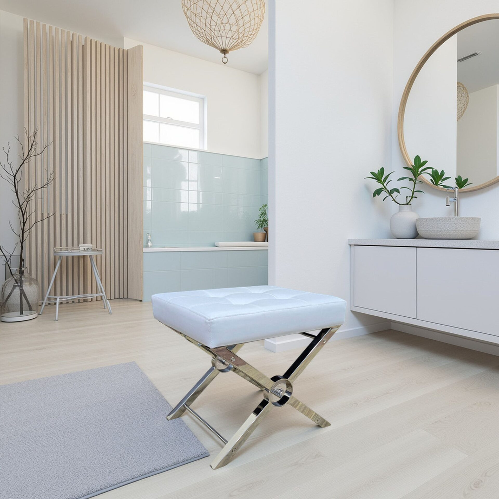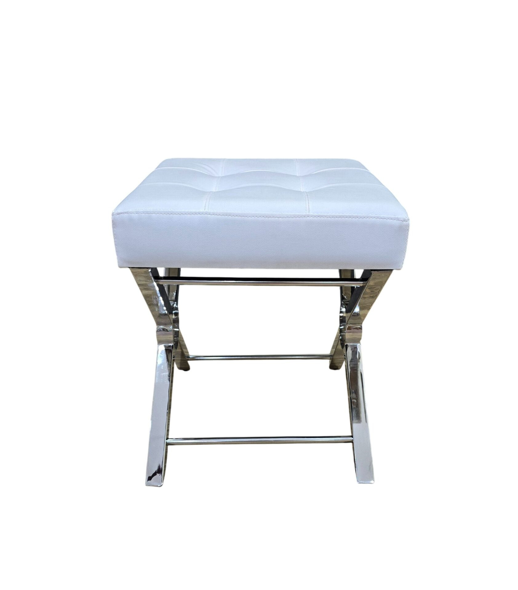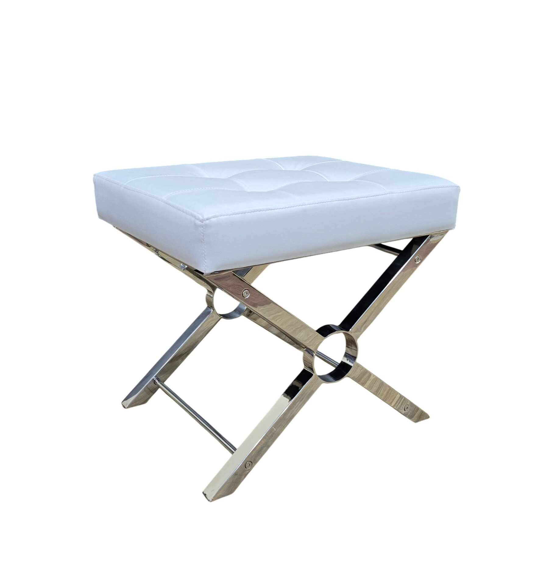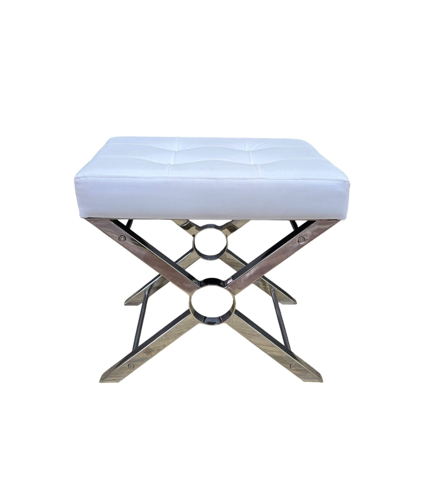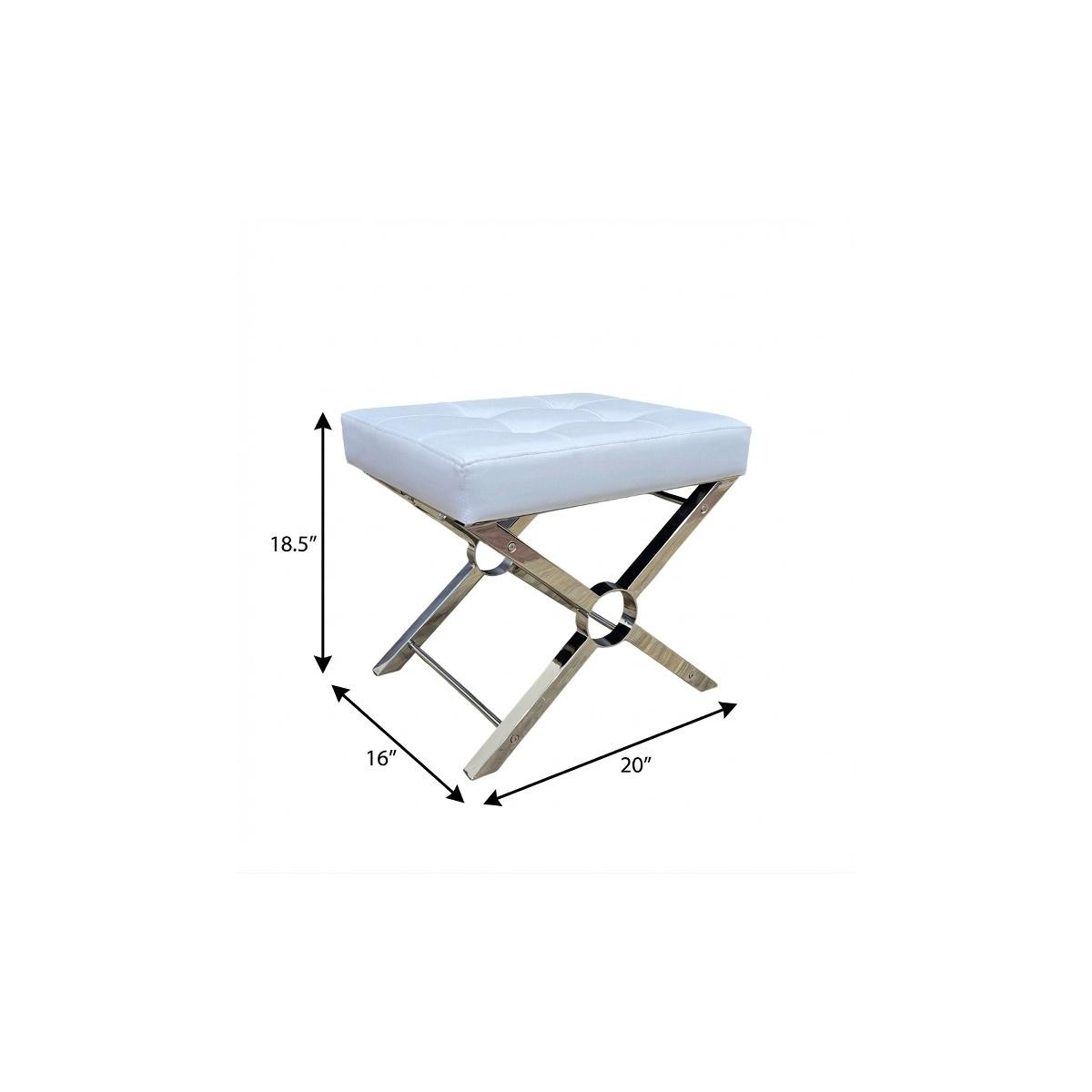 Practicality and fashion mix together with this handy 20-inch white and silver tufted faux leather and metal upholstered bench. A silver metal frame is finished off with a white upholstery seat that is the epitome of quality construction and design. Adding this bench to the end of your bed is a great idea to help you get ready in the morning. Benches don't have to be unsightly. Increase your seating and the fashion quotient of your room all at the same time with this hard wearing, versatile, and good looking bench. 18.50-inch h x 20.00-inch w x 16.00-inch d.
