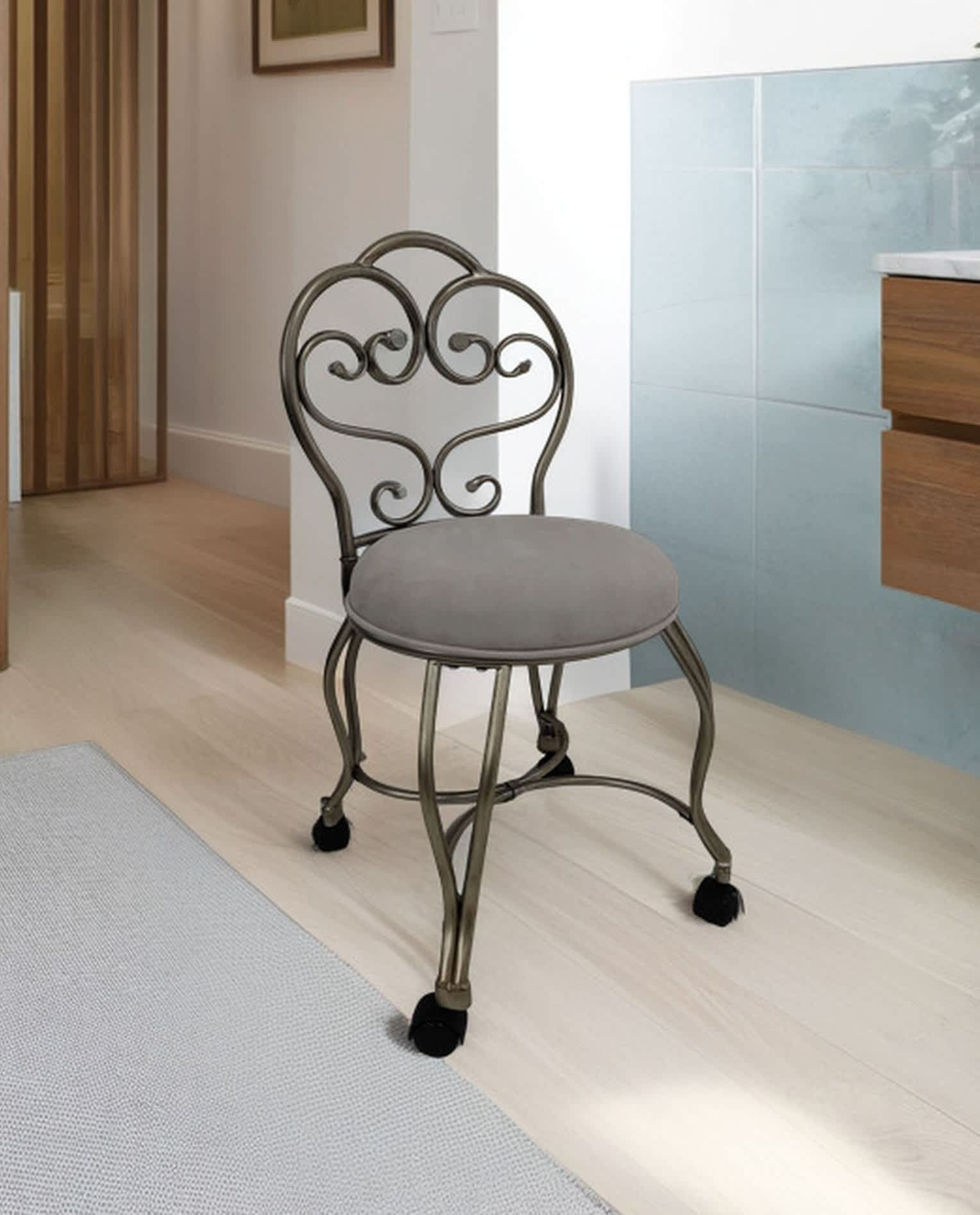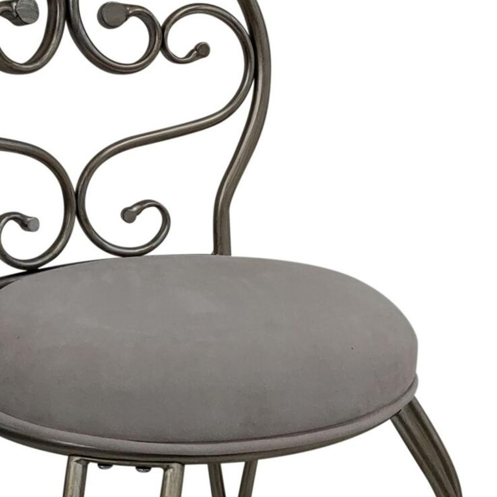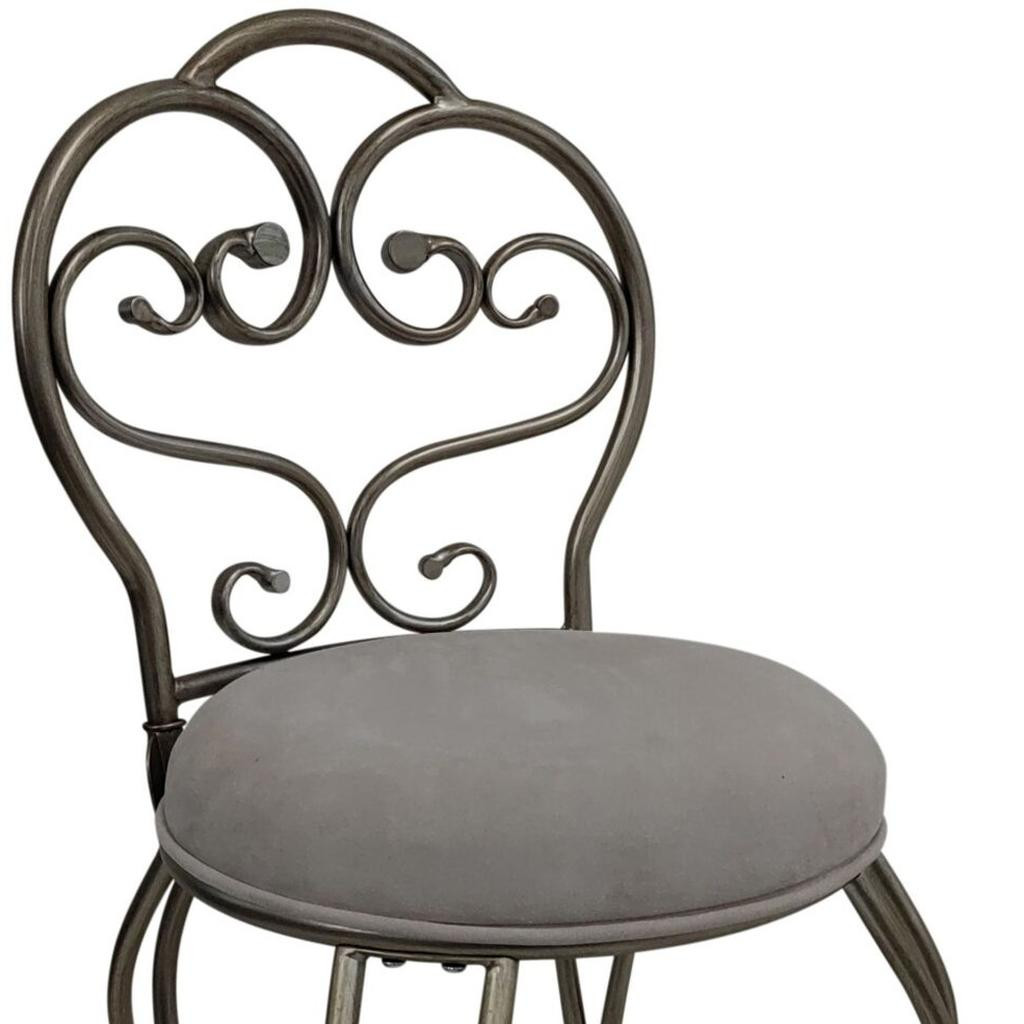 microfiber metal upholstered round bench, cream silver microfiber metal upholstered, metal upholstered round bench, 18" cream silver microfiber, upholstered round bench |