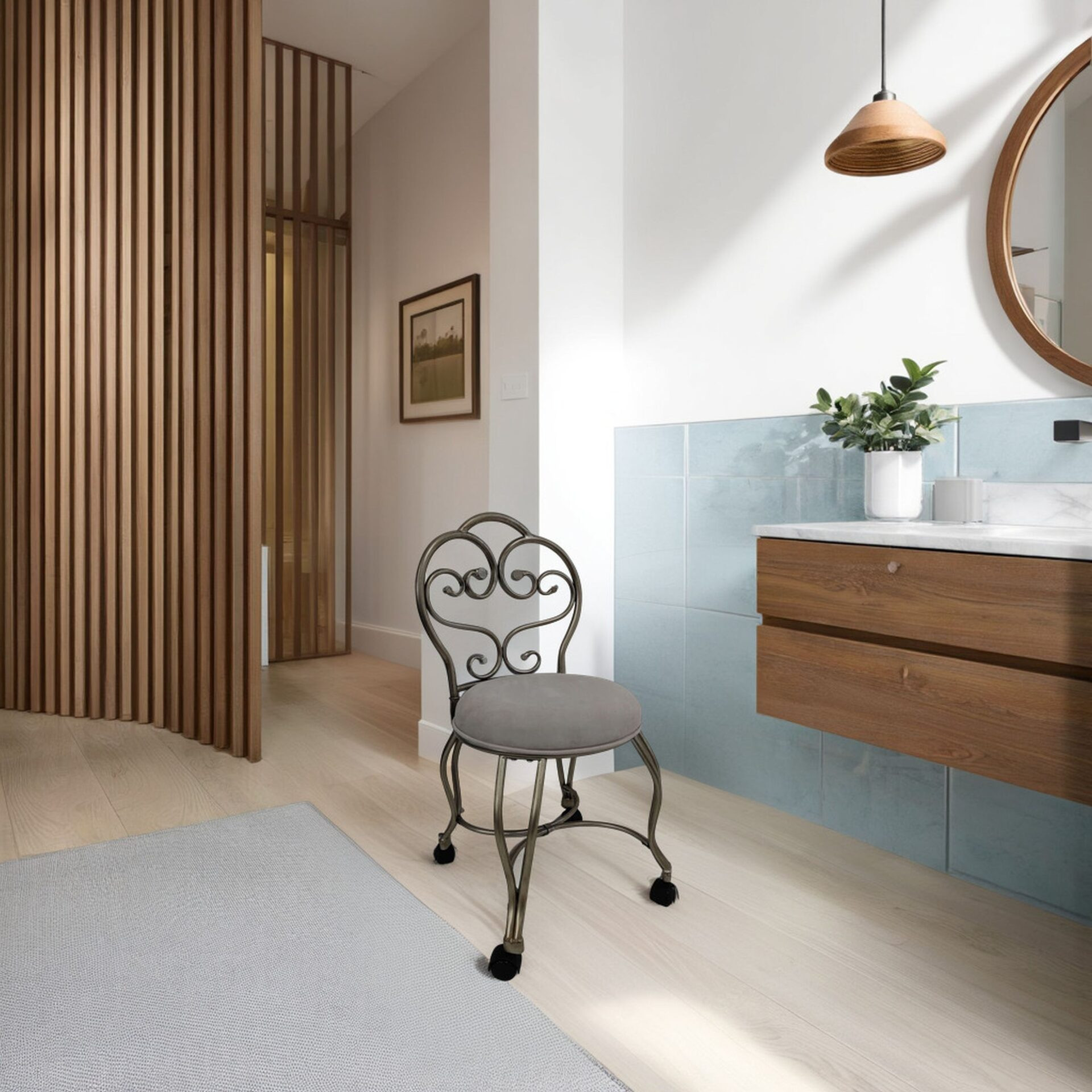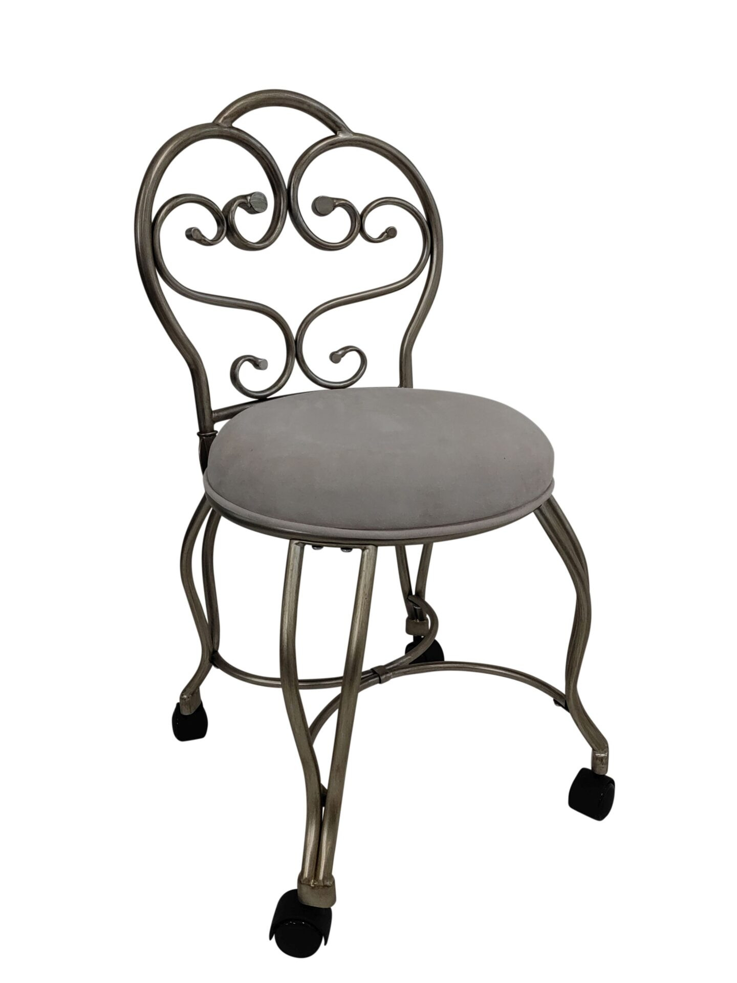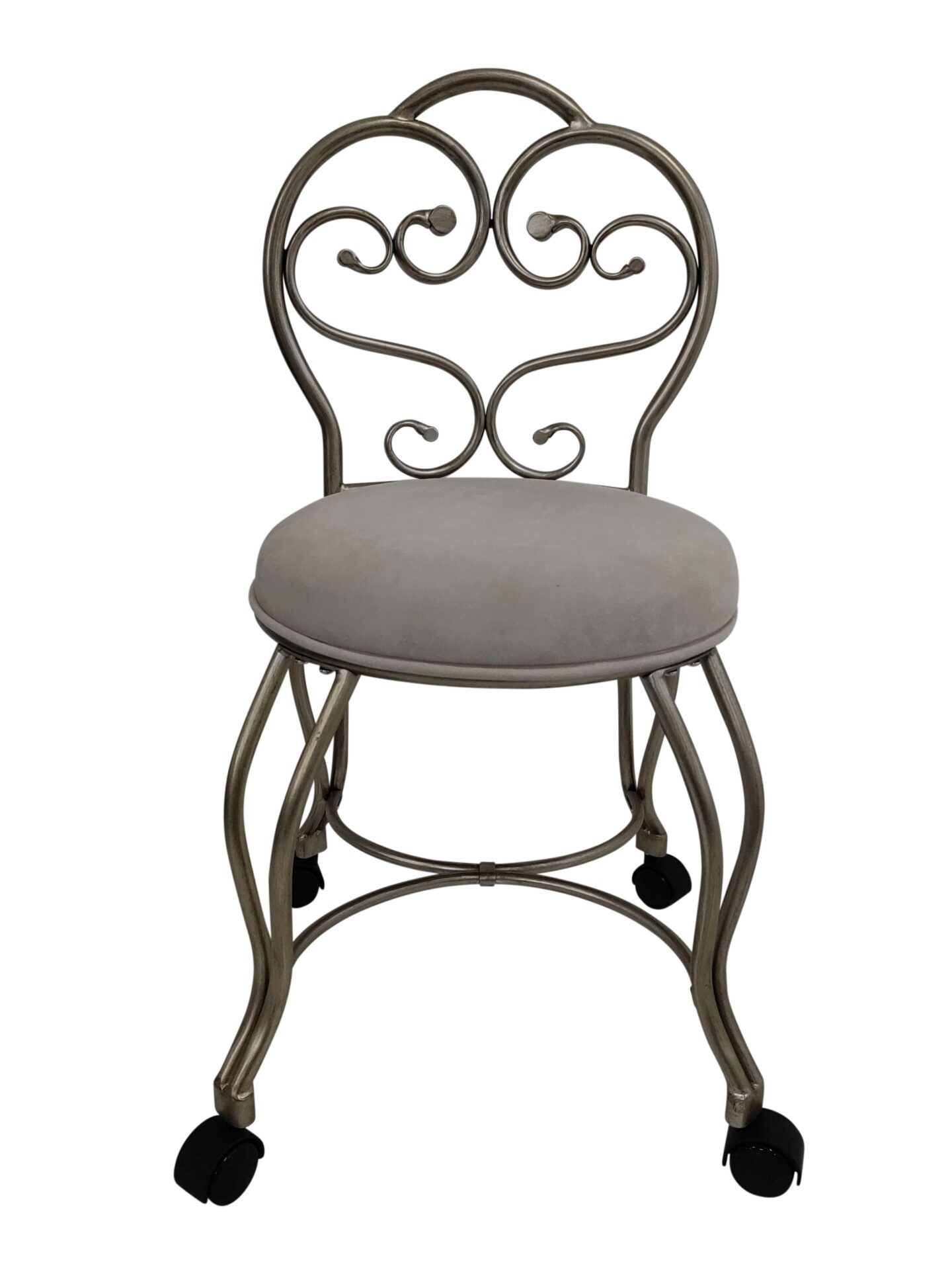 microfiber metal upholstered round bench, cream silver microfiber metal upholstered, metal upholstered round bench, 18" cream silver microfiber, upholstered round bench |