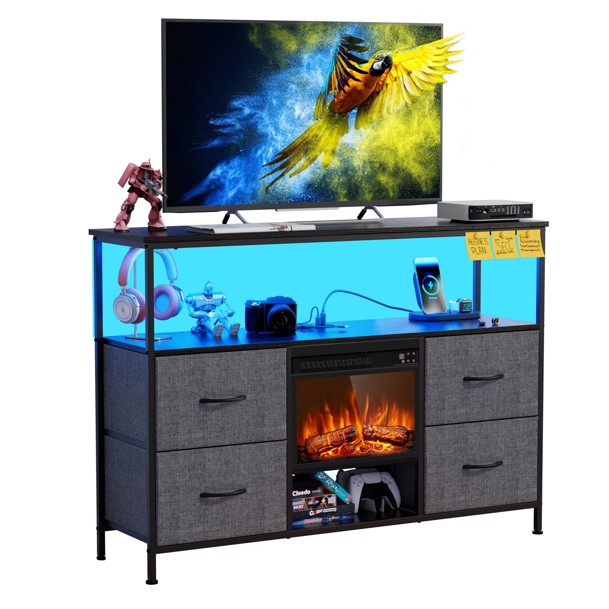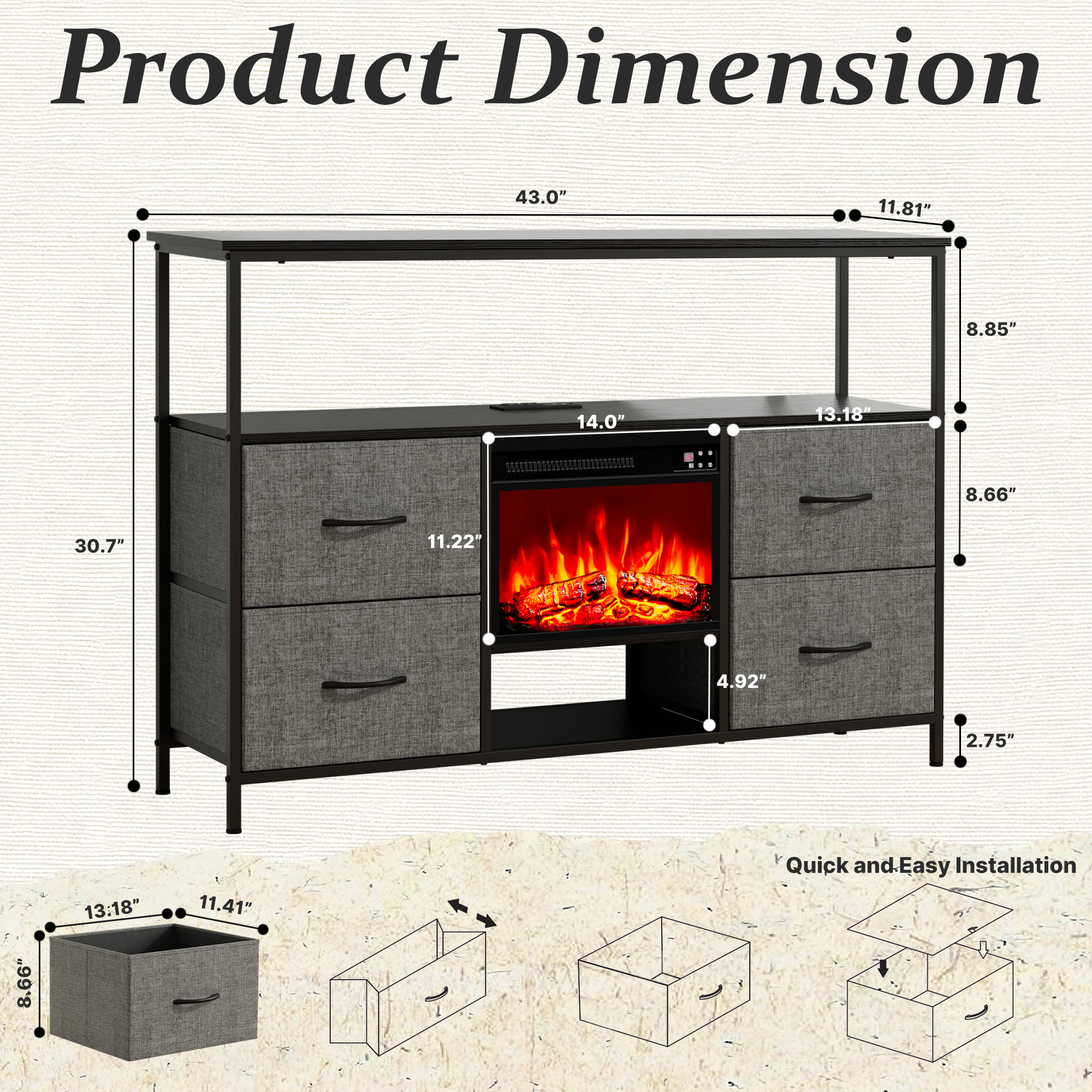 Experience entertainment right in the comfort of your own home with the 43-inch black wood fireplace tv stand with fireplace. Designed to be sturdy and long lasting, this versatile furniture piece is crafted from durable manufactured wood and features a modern design style. To add to the versatility, this piece features open non-concealed storage that can be used for not only storage but display as well. A built-in cable and wire management helps to keep those unseemly wires at bay. Not only practical for your tv, this gorgeous furniture piece is also a electric fireplace that will give your room such warm and comfy vibes. Convert your room into a special place with your favorite collectibles and tv accessories that is suitable for living room, bedroom, or office. 30.70-inch h x 43.00-inch w x 11.81-inch d.