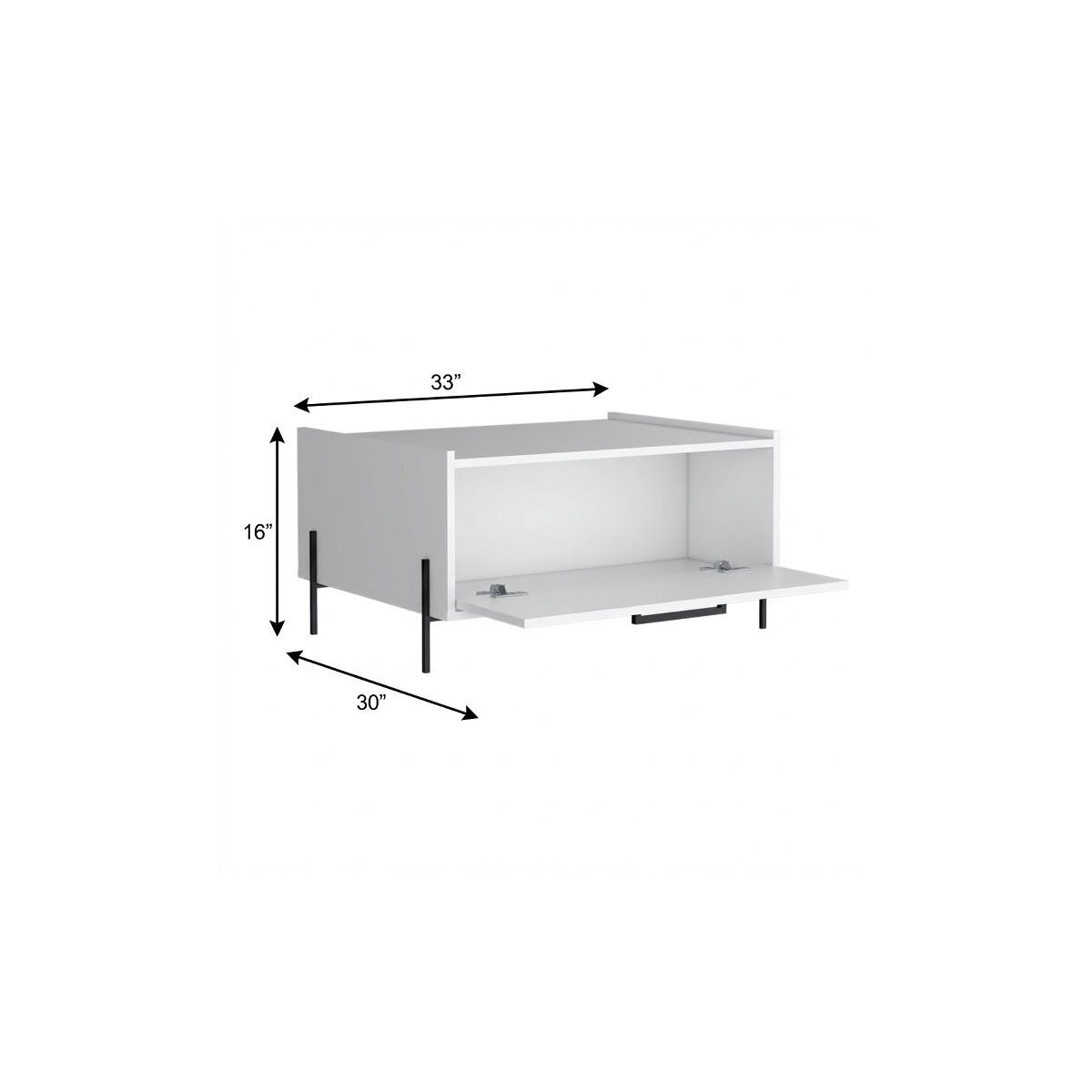Stylish and super sturdy, the 30-inch white wood solid coffee table is an amazingly good looking coffee table that will compliment your living room. This table is made from manufactured wood in a white color throughout the base and top. This classic rectangular table will be a great accent in any room if you're looking for something that can fit into a living area, bedroom, or office, this coffee table is for you. 16.00-inch h x 30.00-inch w x 33.00-inch d.